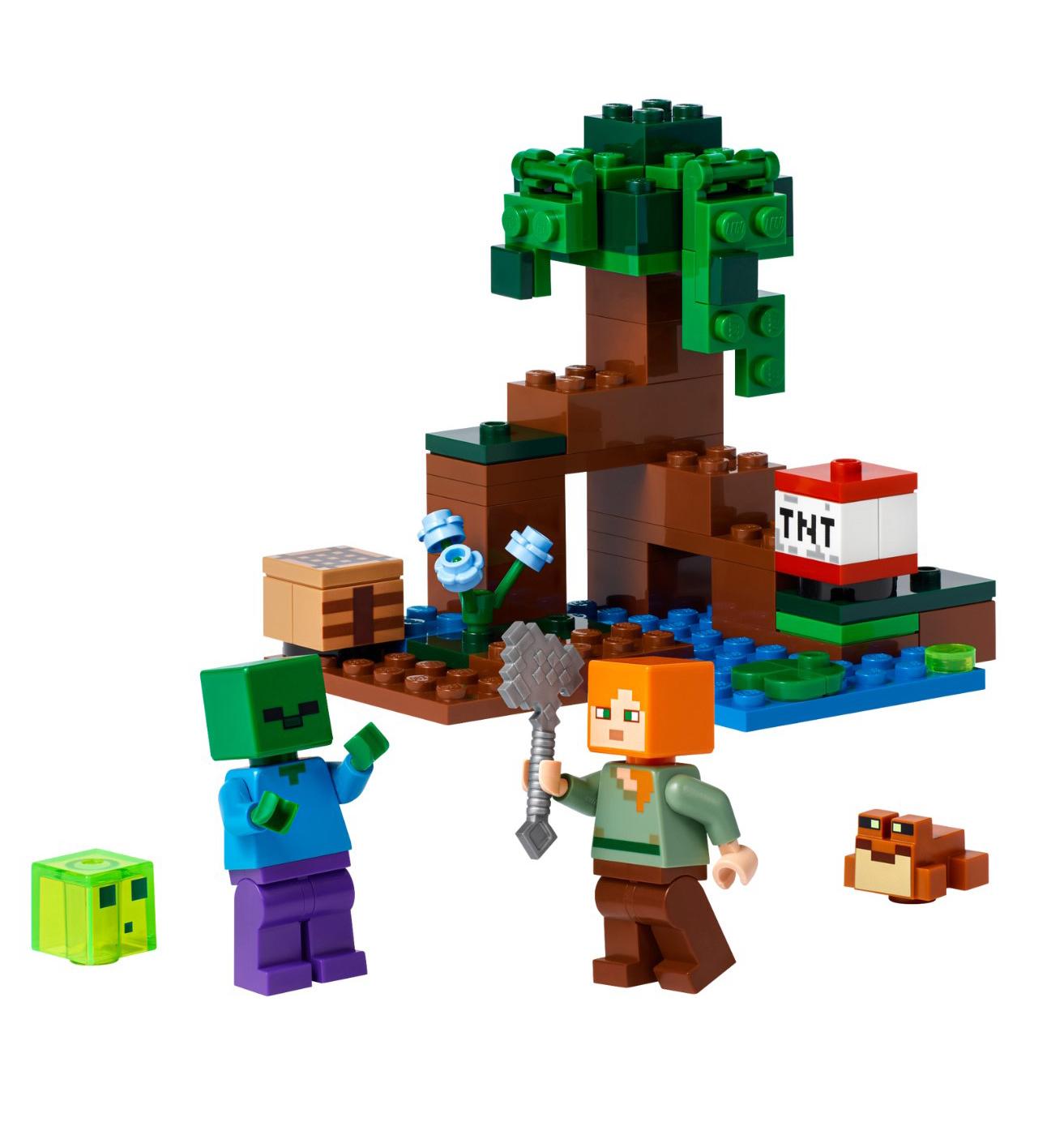 Treat Minecraft players aged 7 and up to a swamp full of hands-on, action-packed, creative play with LEGO Minecraft The Swamp Adventure (21240). Put the creative thrills of Minecraft into kids’ hands with this physical version of the perilous swamp biome. This versatile toy features familiar Minecraft favorite Alex as she journeys through mud and mangroves on a Minecraft adventure. As well as opportunities for creative construction, there are 2 hostile mobs to battle – a zombie and a slime – and a friendly frog who observes the action from a lily pad. Kids help Alex use her axe and operate a lever to detonate a TNT explosion to fend off any attack.