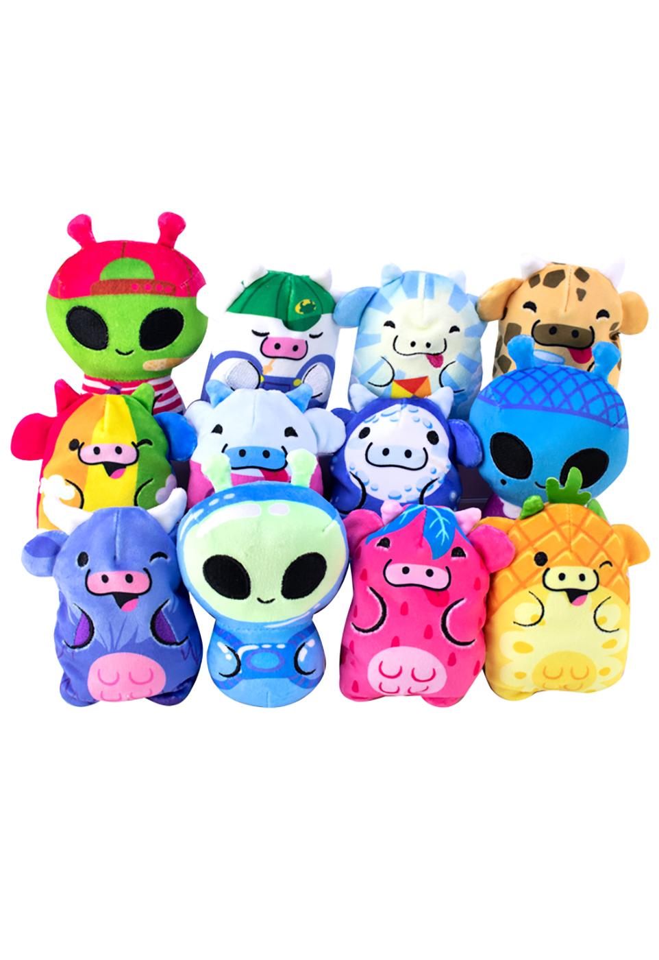 Each 4-inch plush is carefully crafted with high-quality materials, making them the perfect addition to any toy collection. Whether you're a cow or aliens fan, these collectibles will surely make you smile.