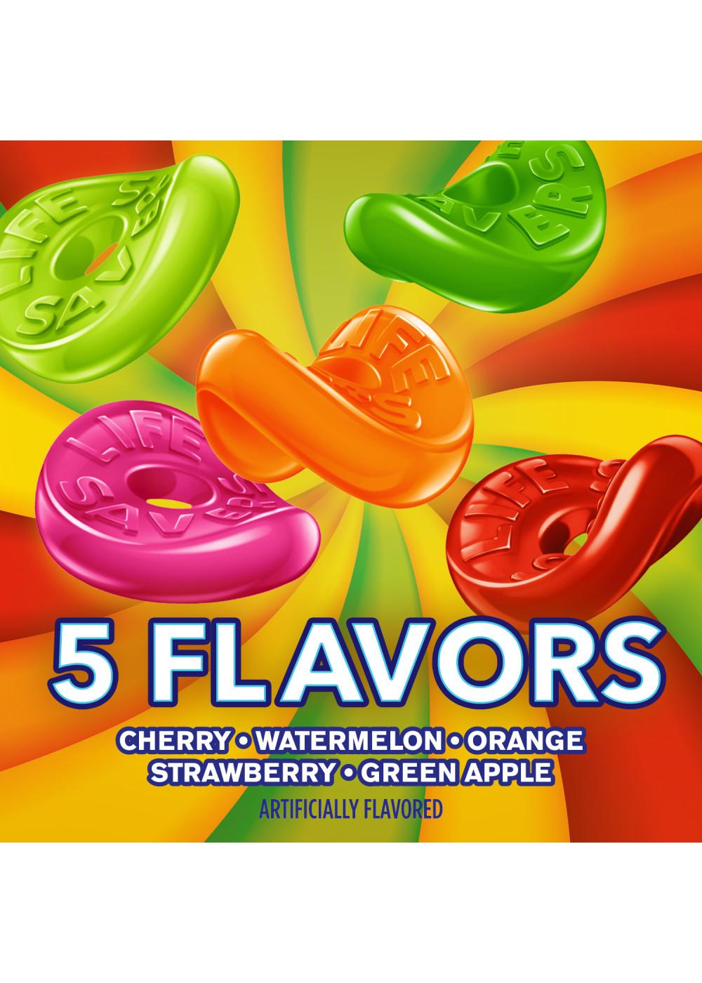 Who could resist the simple joy of the soft, chewy, fruity goodness of LIFE SAVERS Gummies Candy? Who would want to? The classic combination of cherry, watermelon, green apple, strawberry, and orange flavors in LIFE SAVERS 5 Flavors Gummies recalls the treats we enjoyed growing up. From offices So give yourself a moment to feel like a kid again with LIFE SAVERS Gummies candy: A Hole Lot O Fun. The possibilities are endless with this party size bag filled with delicious, fruity LIFE SAVERS Hard Candy. Keep some LIFE SAVERS Gummies Candy in your desk for an afternoon treat or top off candy buffets with these fruit-flavored candies.