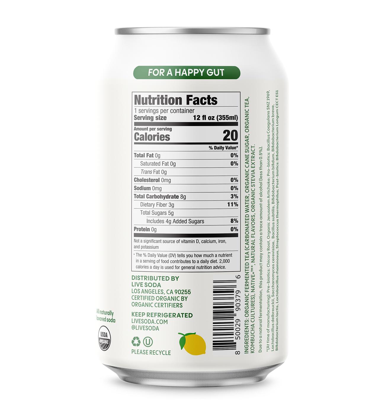 Orgnaic Kombucha (Organic Tea, Organic Sugar, and Organic Kombucha Culture Fermented in Purified Water), Natural Flavors, Organic Stevia Extract