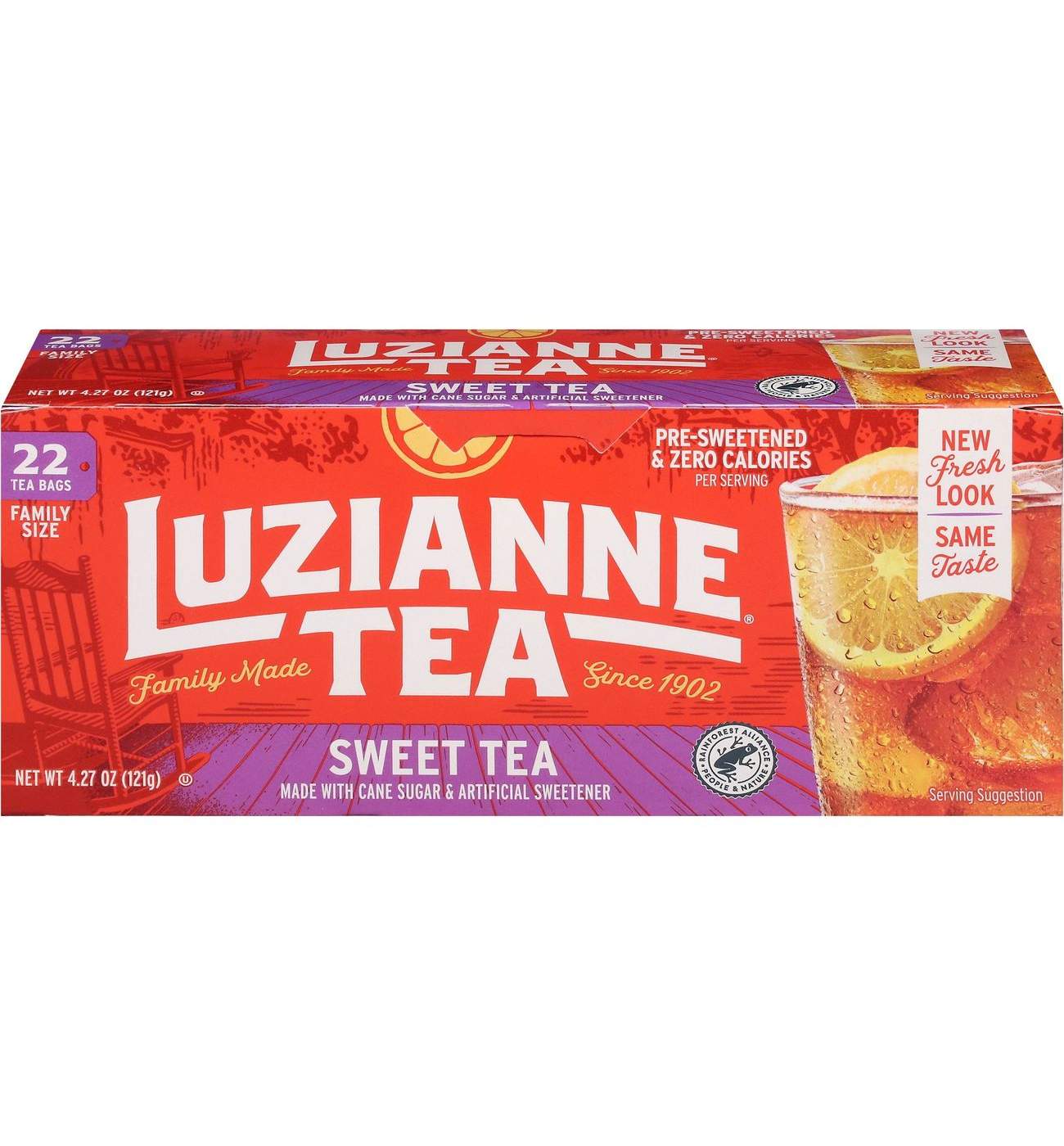 A pitcher of Sweet Iced Tea is always refreshing and invigorating. Luzianne Iced Sweet Tea is pre-sweetened with pure cane sugar and specially blended to brew authentic Southern Sweet iced tea. Then there’s the hundred-plus years of heritage and iced-tea experience in every bag. When you consider all this, the choice is clear. Luzianne is the right tea for iced tea. One box brews 5.5 gallons.