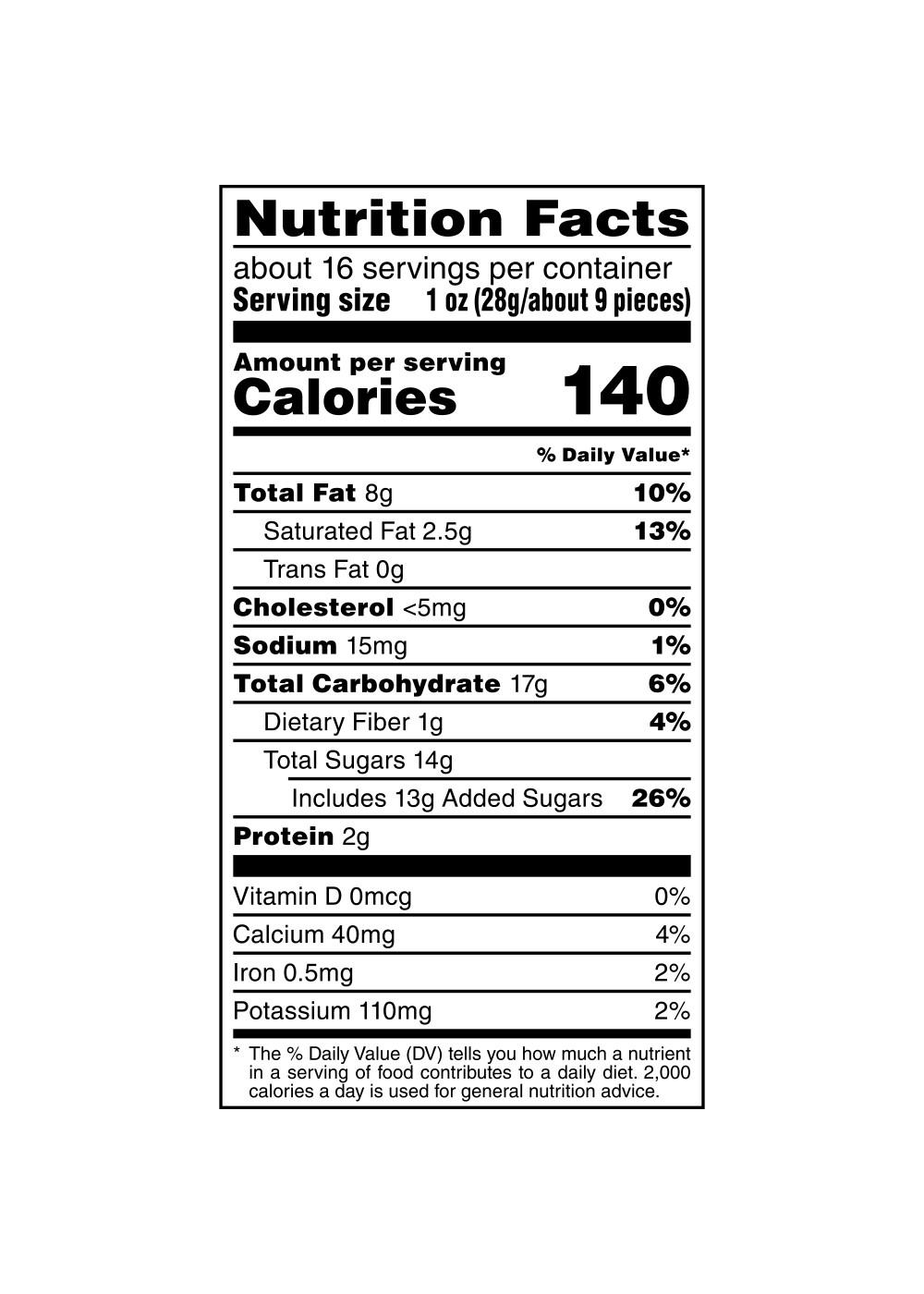 Serving Size1.00 Ounce- Amount Per ServingCalories140