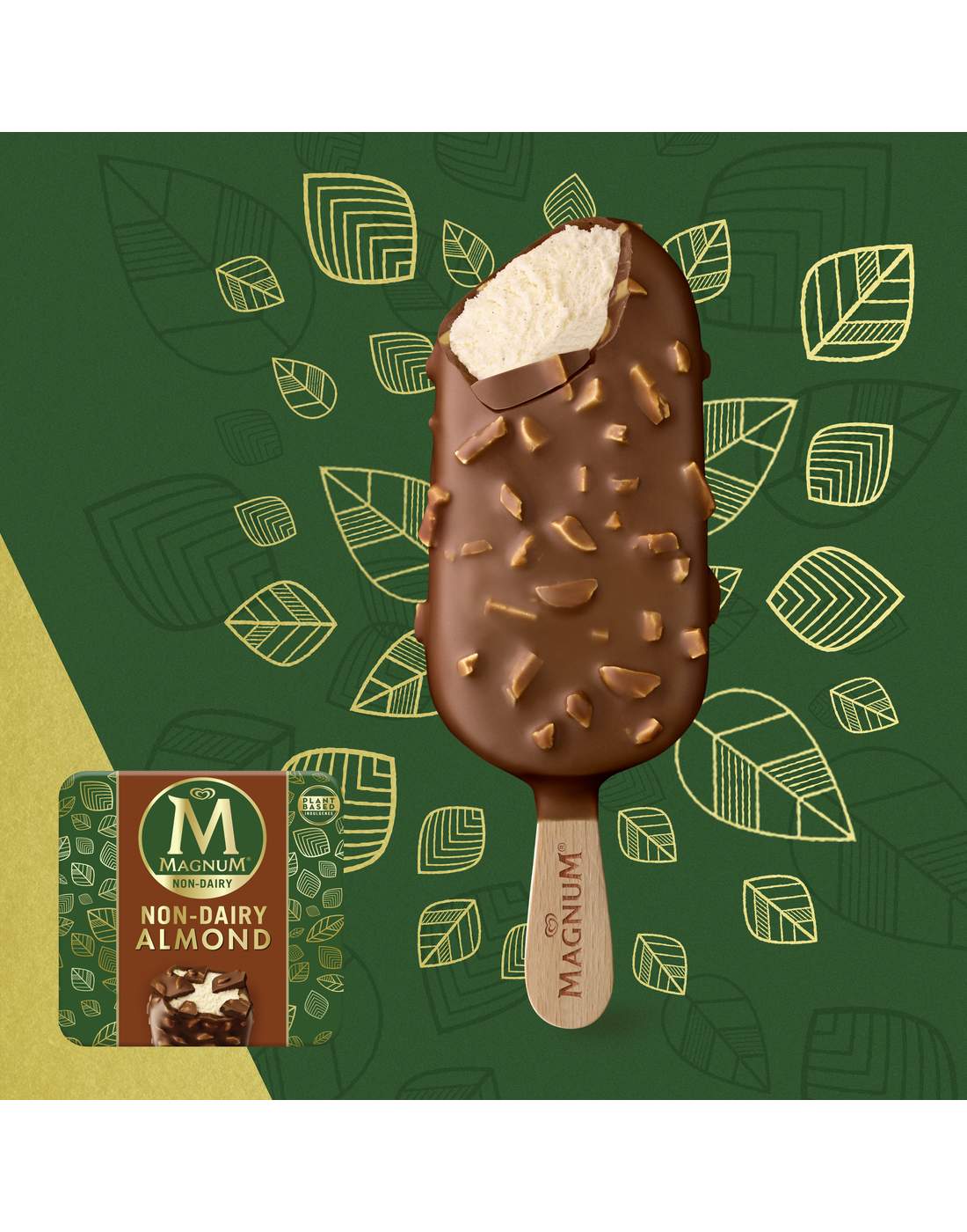 • Magnum Almond Non-Dairy Ice Cream bar is made with non-dairy vanilla ice cream dipped in non-dairy crunchy chocolate with almond pieces