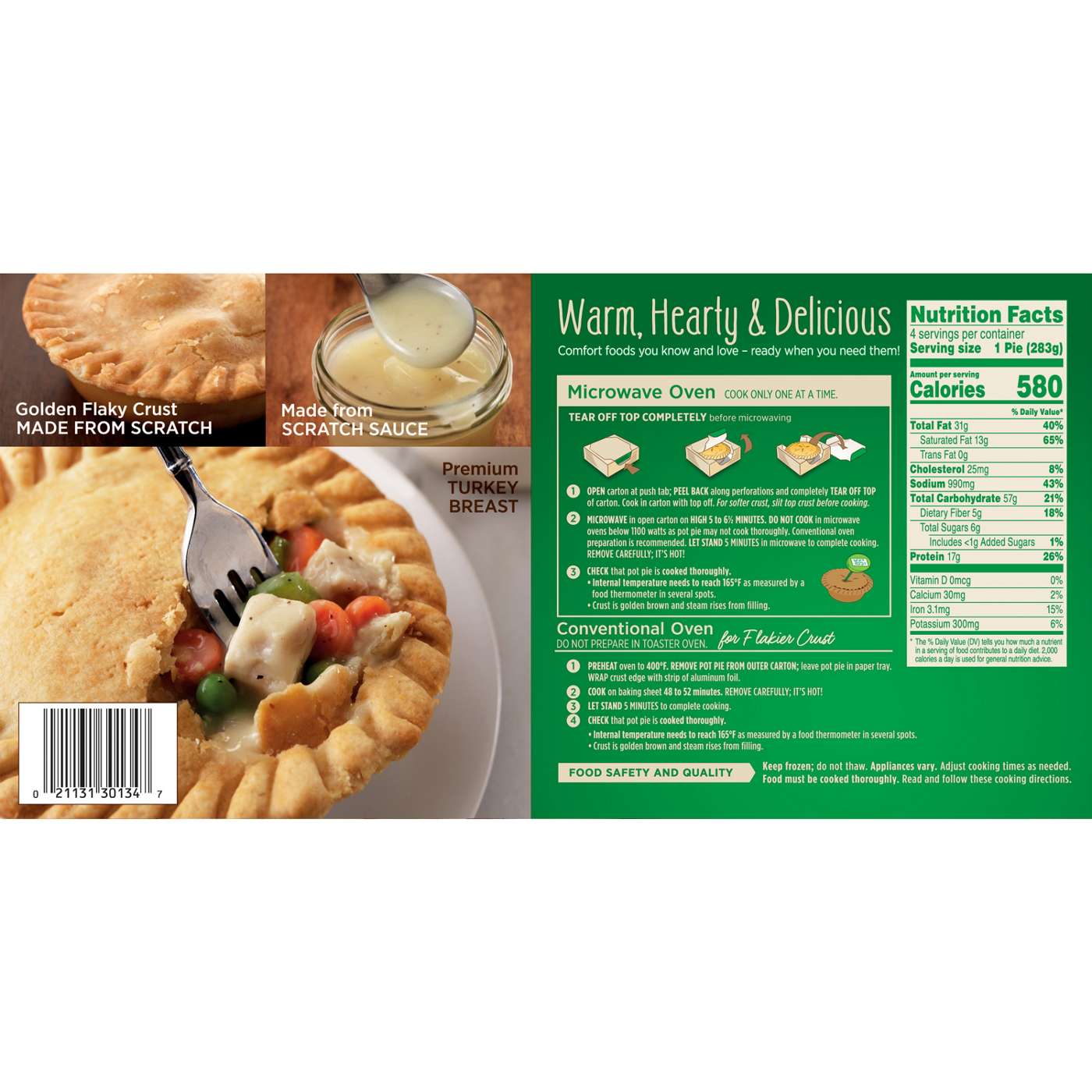 • Four pack of 10 oz Marie Callender's Turkey Pot Pie frozen meal