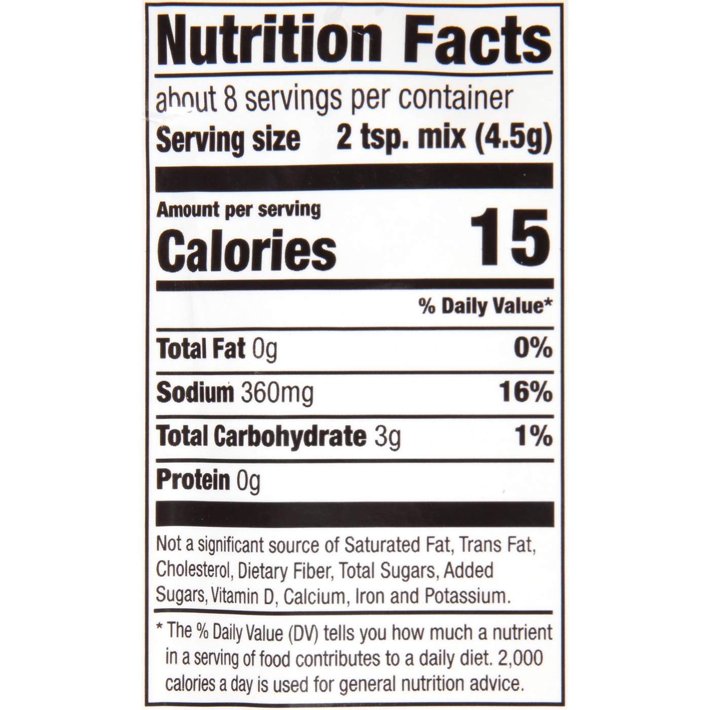 Serving Size2.00 tsp mix- Amount Per ServingCalories15