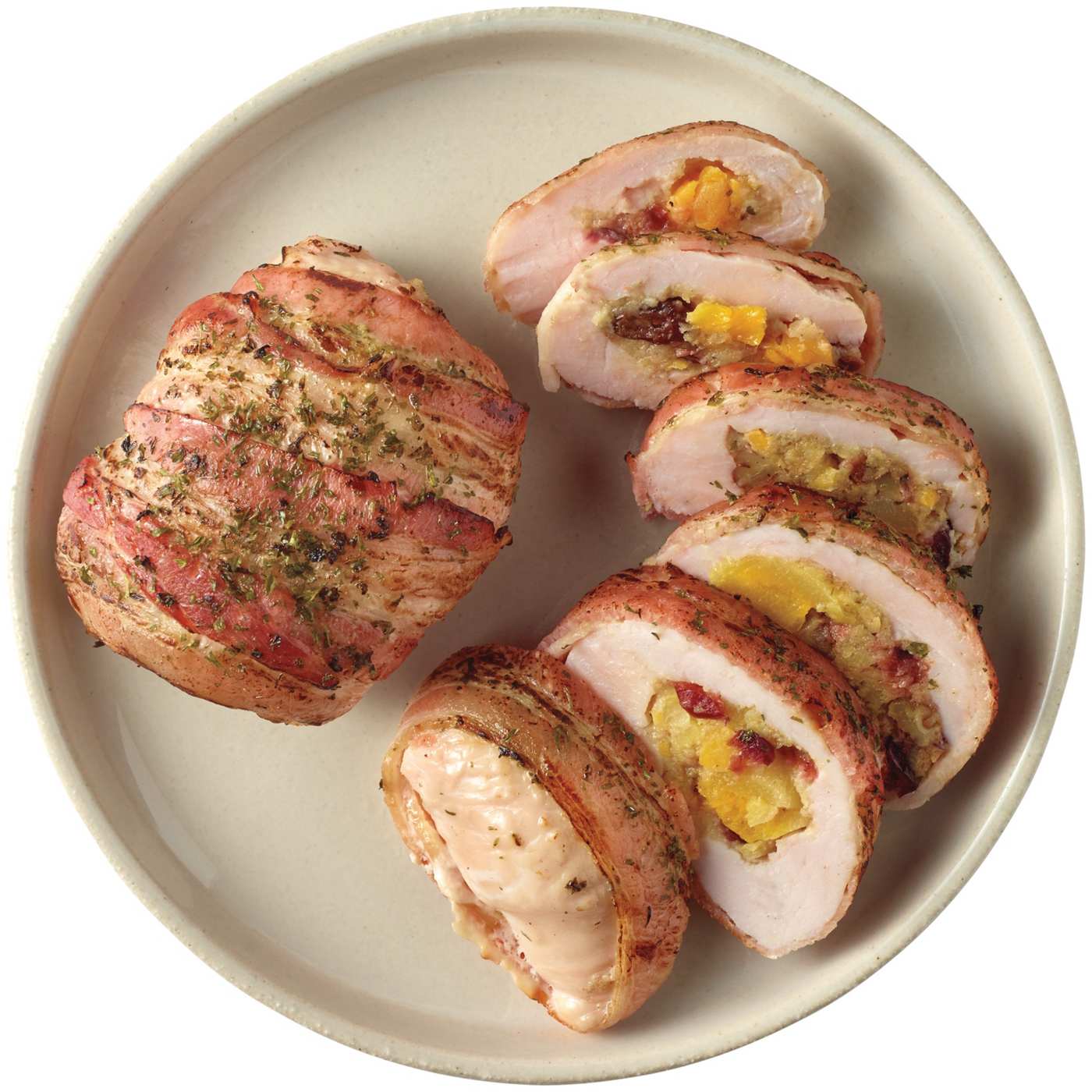 • 2 bacon-wrapped and stuffed turkey breasts