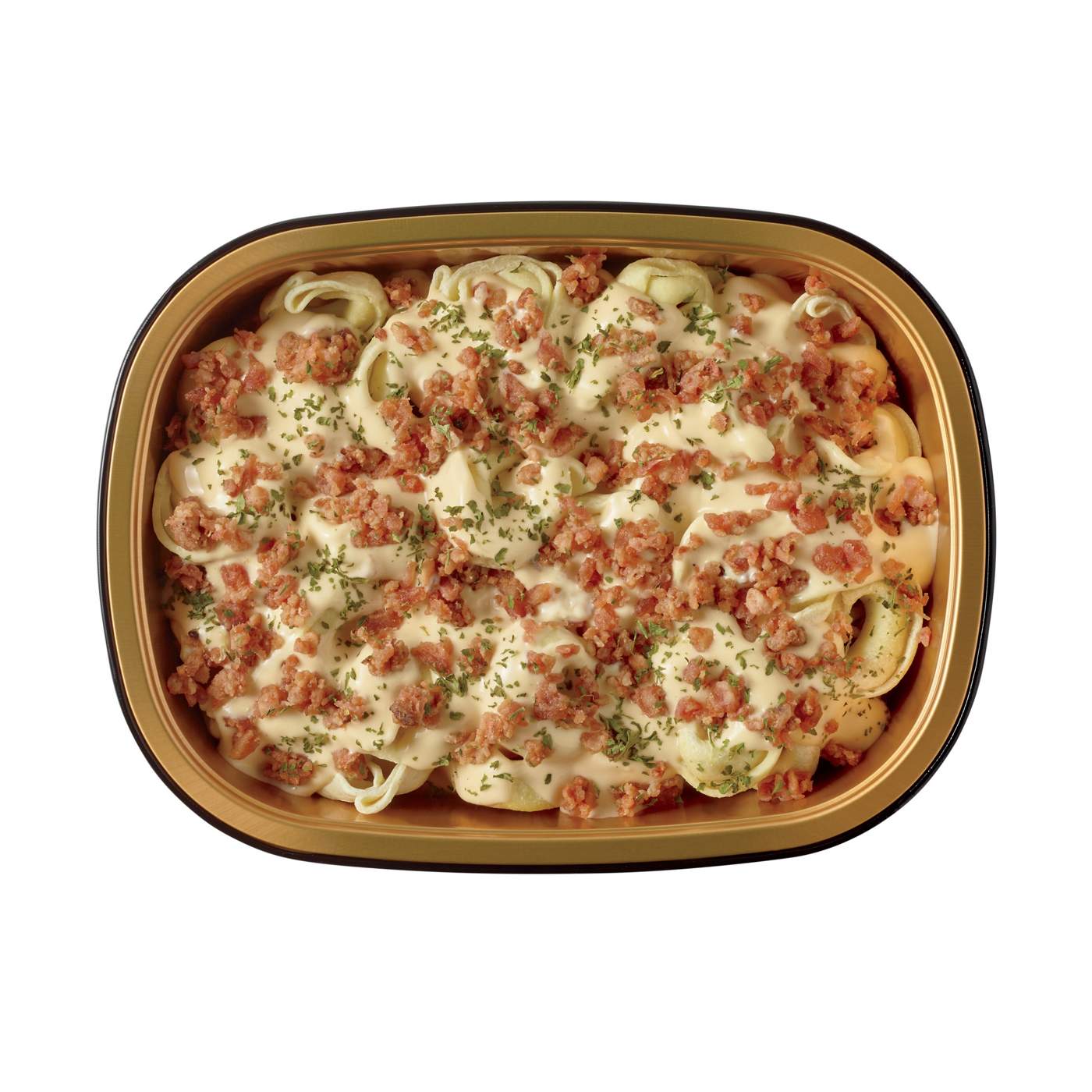 Cheese Tortellini (Enriched Semolina Flour [Semolina Flour {Niacin, Ferrous Sulfate, Thiamine Mononitrate, Riboflavin, Folic Acid}], Water, Ricotta Cheese [Whey, Vinegar, Salt], Wheat Flour, Romano Cheese [Pasteurized Cow's And/Or Sheep's Milk, Cheese Culture, Salt, Enzymes], Parmesan Cheese [Pasteurized Part-Skim Milk, Cheese Cultures, Salt, Enzymes], Asiago Cheese [Pasteurized Part-Skim Cow's Milk, Cheese Culture, Salt, Enzymes], Salt, Dietary Fiber, Pasteurized Whole Eggs, Milk, Garlic Powder, Onion Powder, Spices, Beta Carotene [Color]), Carbonara Sauce (Light Cream [Milk, Cream], Water, Grated Parmesan Cheese [Pasteurized Milk, Cheese Cultures, Salt, Enzymes], Uncured Bacon With No Nitrites Or Nitrates Added Except For Those Naturally Occurring In Sea Salt [Pork, Sea Salt, Cane Sugar], Rice Flour, Cultured Dextrose [Cultured Dextrose, Maltodextrin], Garlic, Sea Salt, Corn Starch, Butter [Cream, Salt], Black Pepper, Nisin Preparation Blend [Salt, Nisin Preparation {Preservative}], Annatto Extract [Canola Oil, Annatto Seed {For Color}]), Uncured Bacon Topping With No Added Nitrates Or Nitrites Except For Those Naturally Occurring In Sea Salt And Cultured Celery Juice (Pork, Water, Sea Salt, Sugar, Natural Smoke Flavor, Cultured Celery Juice), Dehydrated Parsley. Contains a Bioengineered Food Ingredient.Allergens and safety warnings