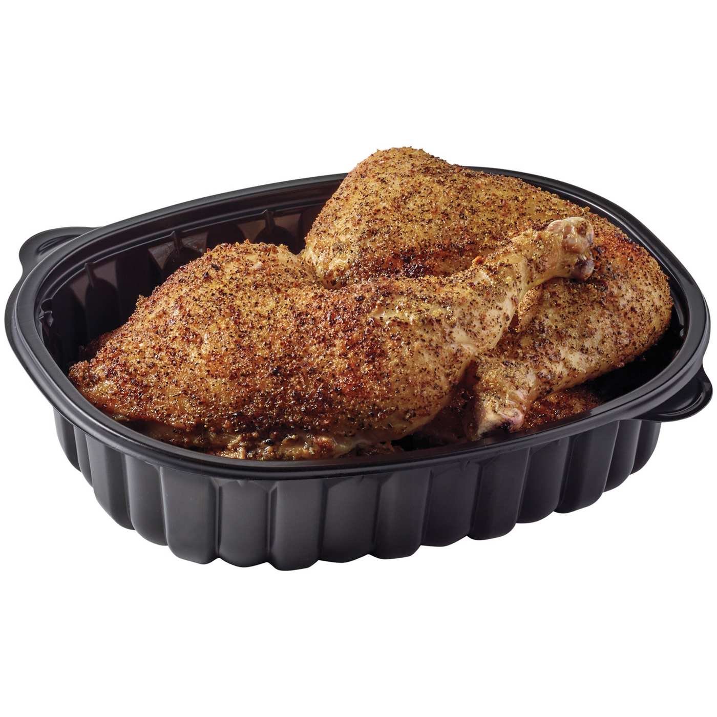 For a big head start on making dinner, add these Meal Simple by H-E-B chicken leg quarters to your cart. Seasoned with a citrusy lemon pepper blend and roasted in store, this hot and ready to eat rotisserie chicken is fresh, never frozen. Savor the juicy taste and crispy skin of these bone-in dark meat thigh and drumstick cuts of chicken.