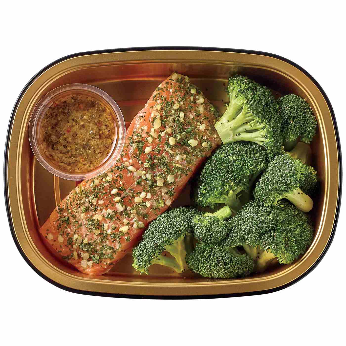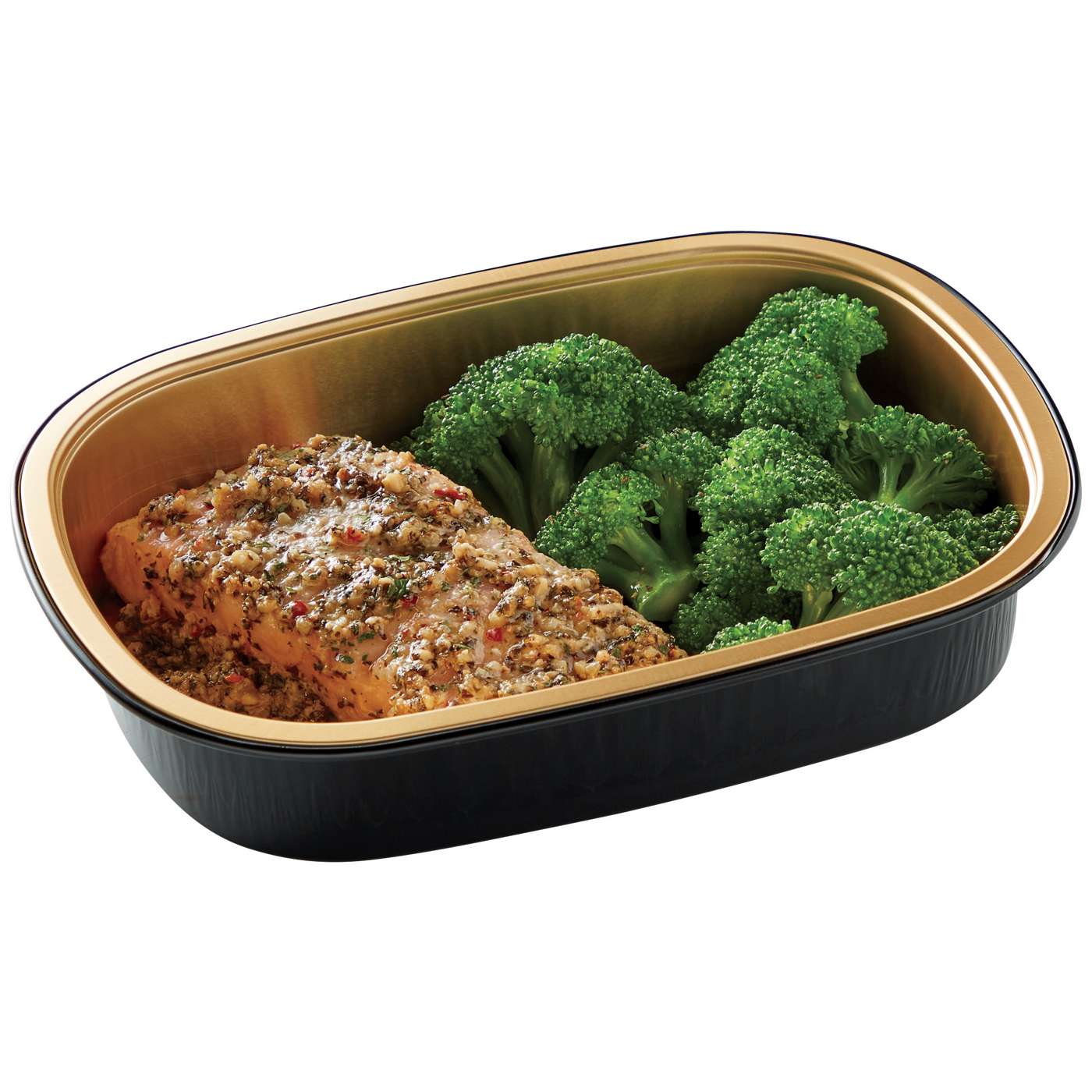Perfect for a low carb lifestyle and totaling 6g net carbs, this Meal Simple by H-E-B entrée features a fillet of Atlantic salmon, topped with garlic pesto. On the side, there's tender broccoli florets. Cook this convenient dish in its oven-safe tray and enjoy in about 25 minutes.