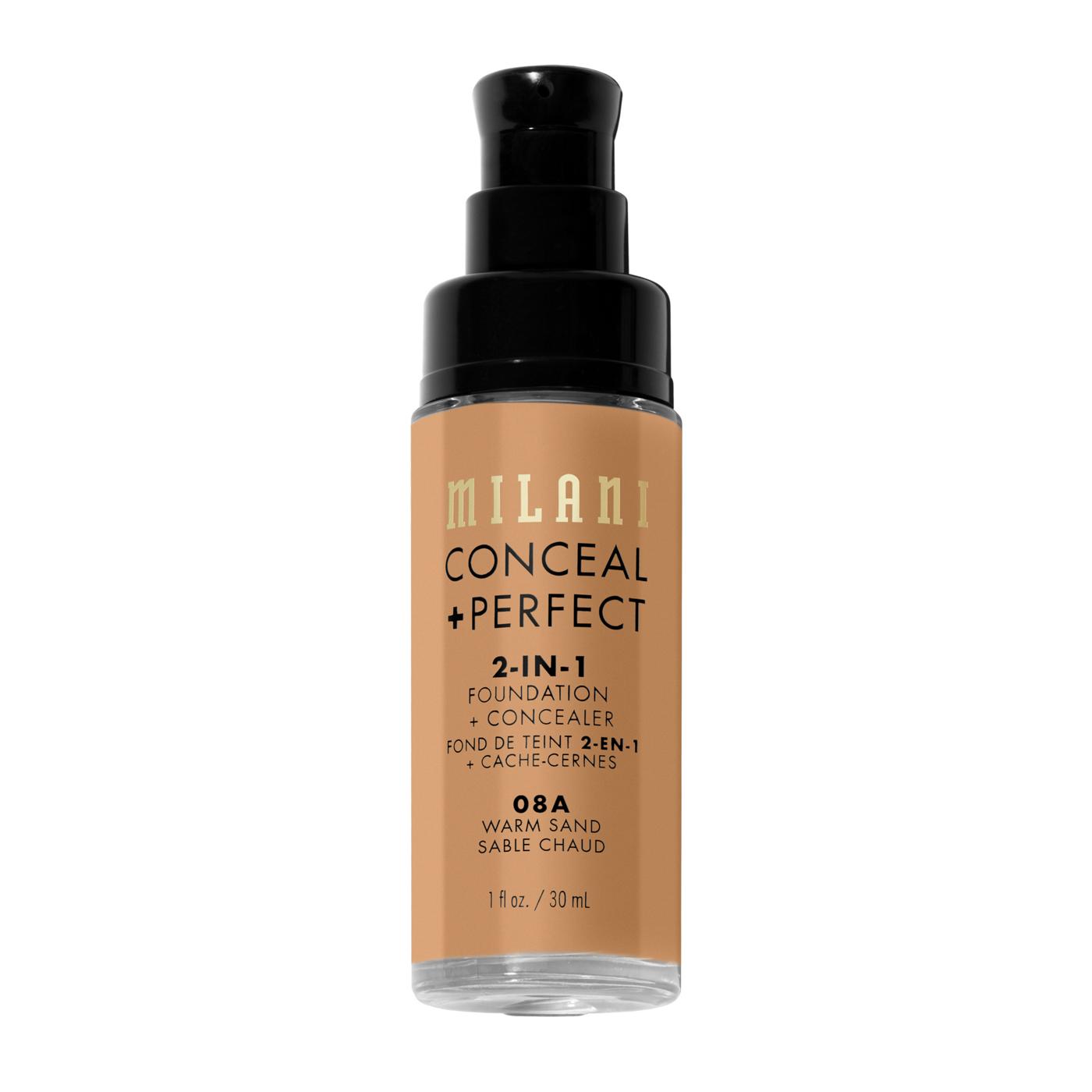 Simplify your makeup routine with Milani's Conceal + Perfect 2-in-1 Foundation + Concealer in Warm Sand. This multitasking product works as both a foundation and a concealer to help perfect your complexion. The formula provides buildable coverage and a natural-looking matte finish.• Lightweight, creamy formula applies smoothly without feeling heavy.• Provides a comfortable soft-matte finish that helps control shine.• Can be used to conceal under-eye circles, redness, and blemishes.• Cruelty-free formulation.
