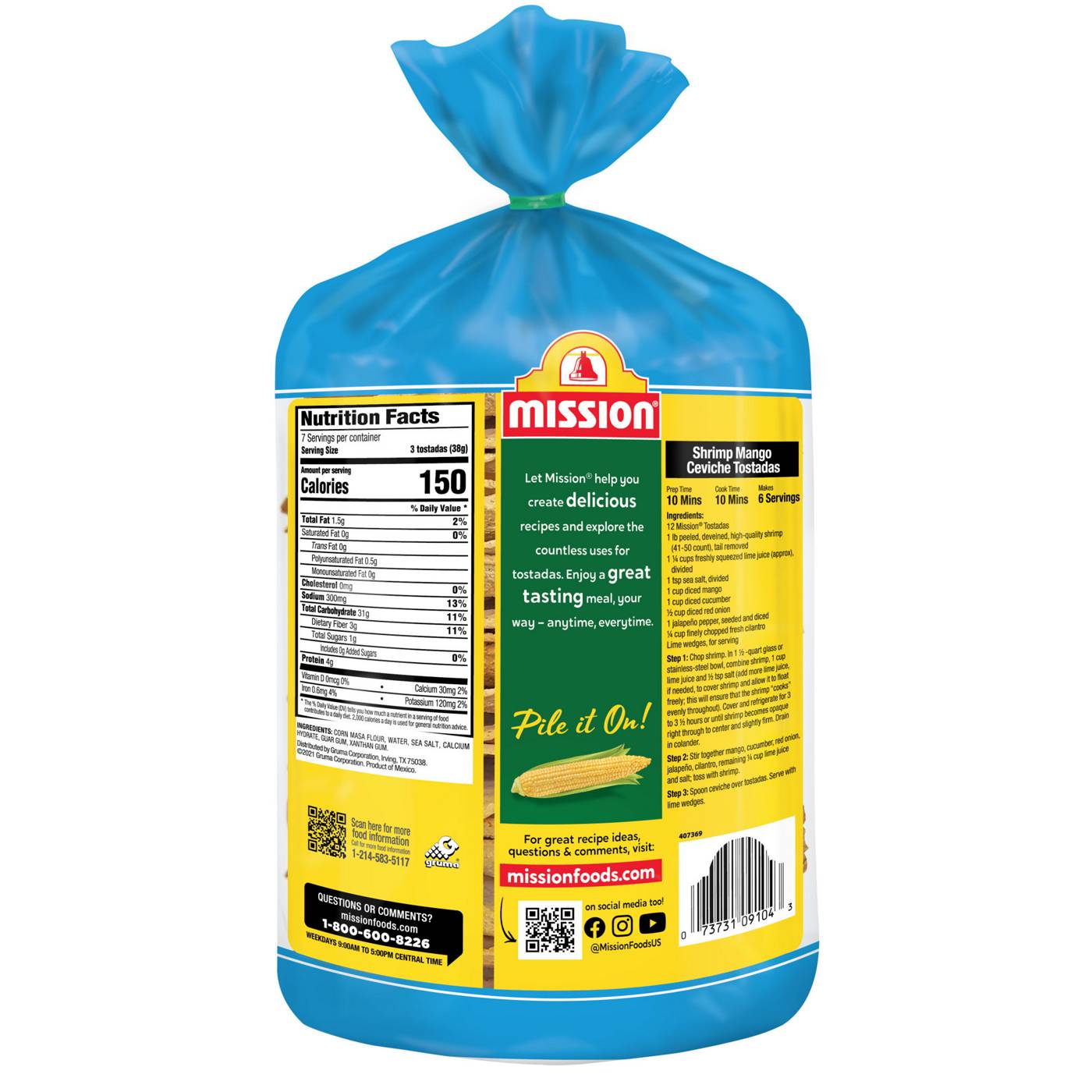 It's time to make your meals a little more toasty with our Mission Baked Tostadas. A tasty, mouthwatering snacking solution, our tostadas can be topped with anything from refried beans to shrimp ceviche. Let Mission help you create delicous recipes and explore countless uses for tostadas. Enjoy a great tasting meal, your way - anytime, everytime. Includes one 22 count pack of Mission Baked Tostadas.- One 22-count package of Mission Baked Tostadas- Turn your traditional Mexican recipes into guilt-free meals that the whole family can enjoy- 96% fat-free and baked with a touch of sea salt to make them the perfect foundation for your favorite recipes- We use only the finest ingredients to craft our tostadas with a homemade feel- We recommend topping them with shrimp ceviche and avocado salsa for a crowd-pleasing dinner