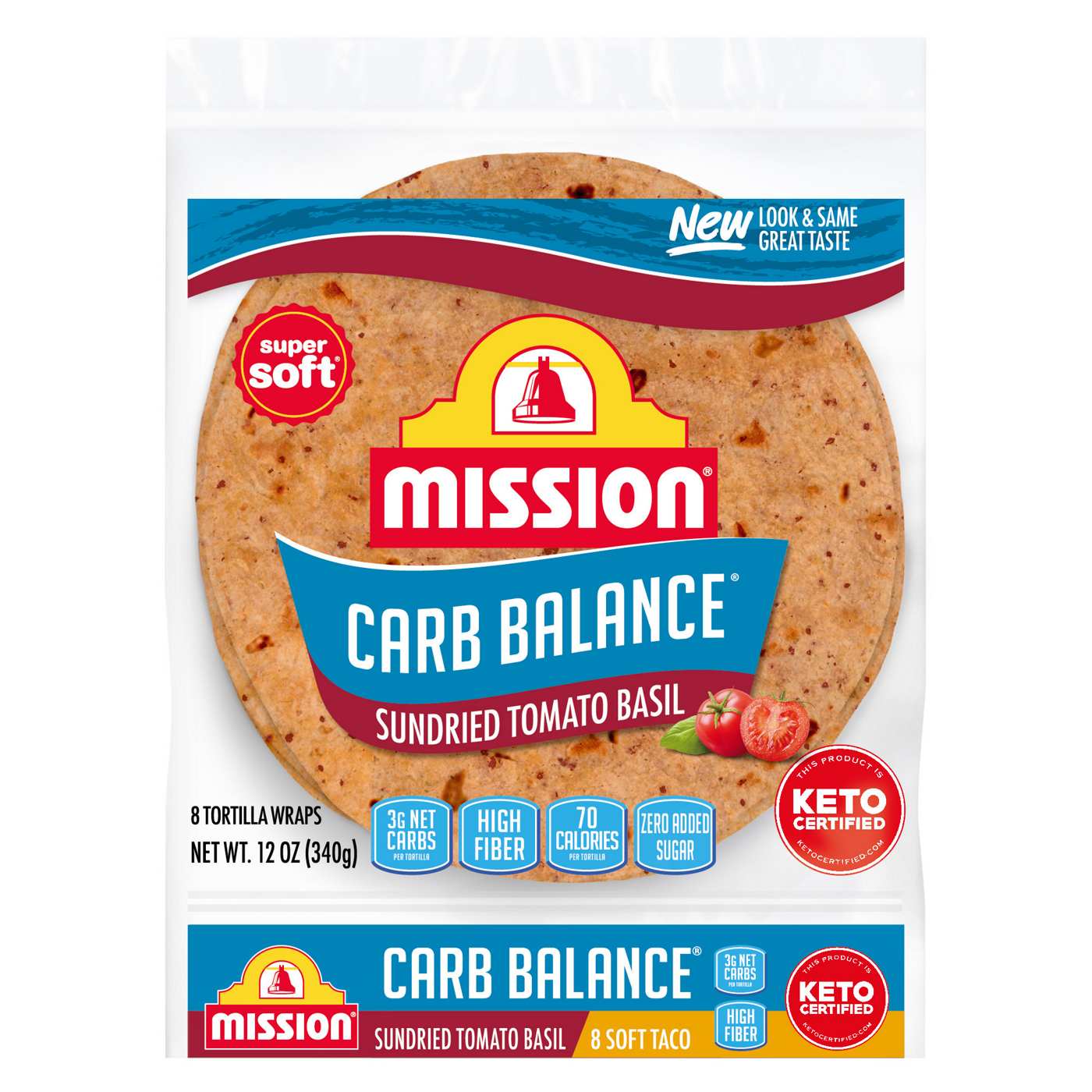 Didn't think a low carb, great tasting flavored tortilla was possible? Think again. Cutting carbs just got tastier. Try our new Carb Balance Sundried Tomato Basil Tortilla Wraps. Packed with zesty sundried tomatoes and fresh basil flavors, these wraps strike the perfect balance between carbs and cravings. Includes one 8 count pack of Mission Super Soft Carb Balance Sundried Tomato Basil Tortilla Wraps.