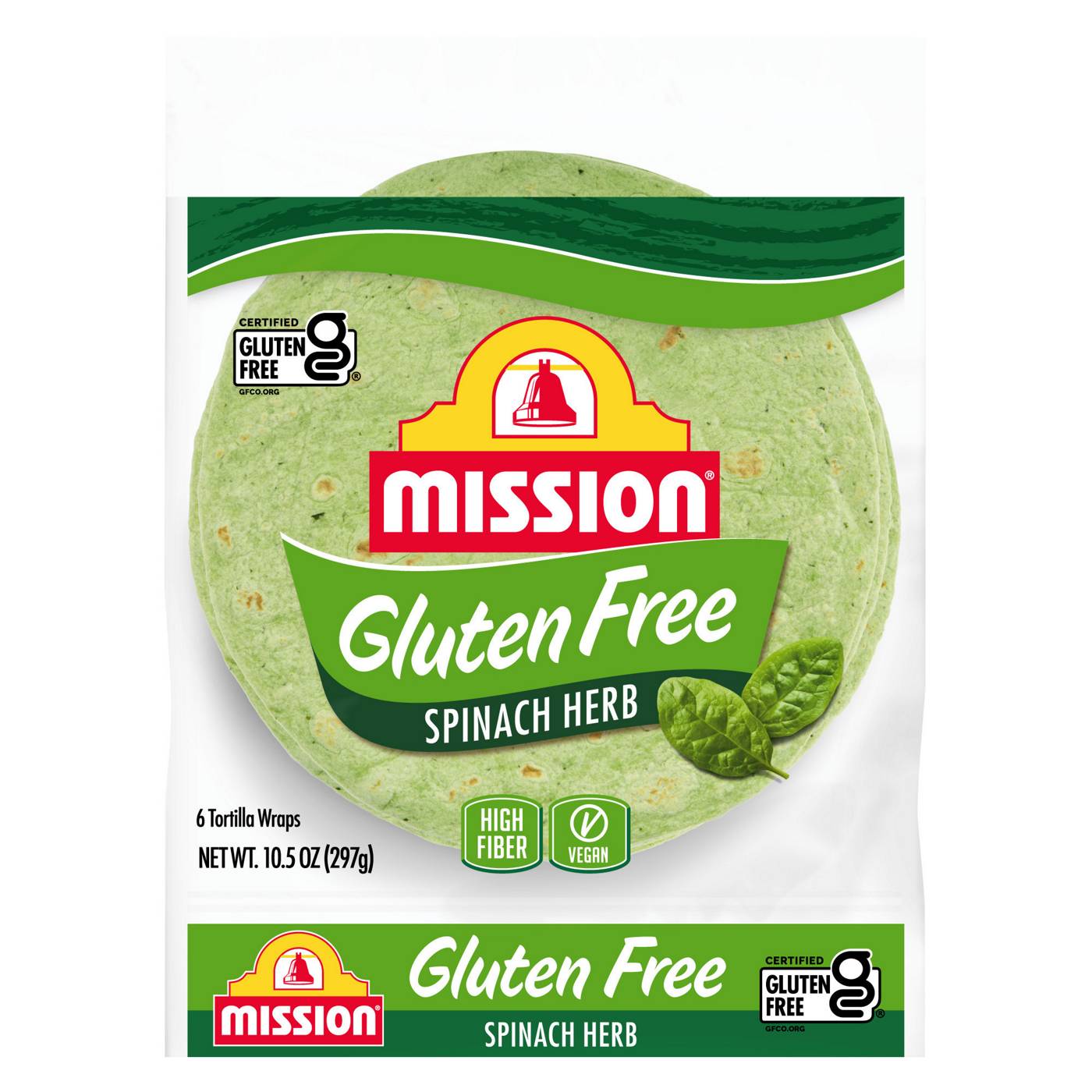 We've put a new spin on Gluten Free! Our spinach tortillas are gluten free, high in fiber, and perfect for a vegan diet. Enjoy the same great taste and satisfyingly soft Mission tortillas you know and love, now with a zesty spinach and herb twist and a ton of new tasty ways to ditch gluten for good. Includes one 6 count pack of Mission Gluten Free Spinach Herb Tortilla Wraps.- One 6-count package of Mission Gluten Free Spinach Herb Tortilla Wraps- With a vibrant green look, a satisfying texture, and a savory taste, these gluten-free tortillas are a stunning addition to any meal- Each serving is high in fiber, vegan, and doesn't contain any artificial flavors, trans fat, or cholesterol- Easy and quick to heat on a skillet, grill, or microwave- Enjoy a new spin on all your favorite gluten-free recipes