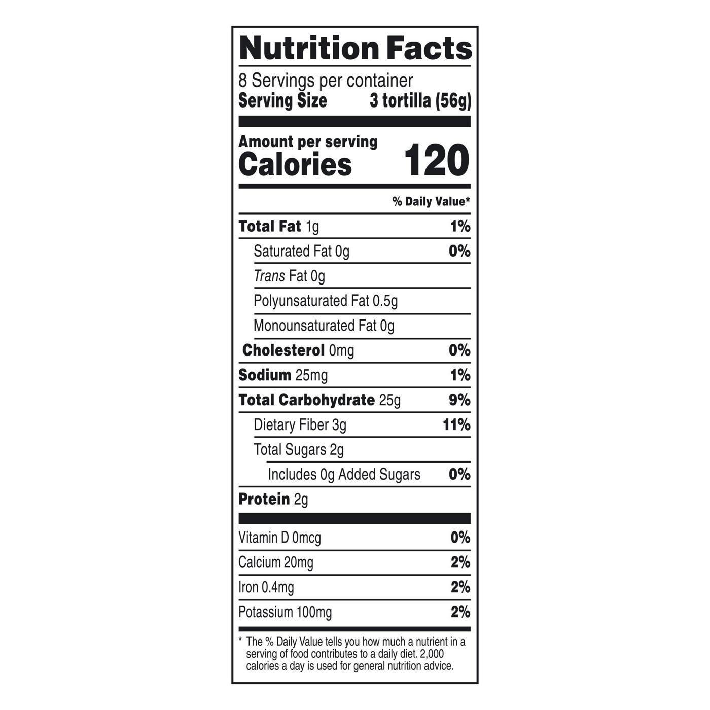 Serving Size3.00 tortillas- Amount Per ServingCalories120
