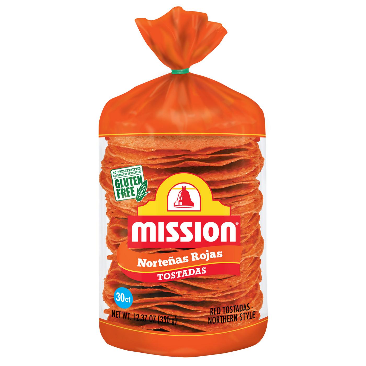 Our Tostadas Nortenas Rojas are a perfect way to share authentic Mexican meals with your family. Crunchy and delicious, Mission Tostadas Nortenas Rojas are a fast, mouth-watering solution for snacks, appetizers, and authentic Mexican dishes. Let Mission help you create delicous recipes and explore countless uses for tostadas. Enjoy a great tasting meal, your way - anytime, everytime. Includes one 30 count pack of Mission Norteñas Rojas Tostadas.- One 30-count package of Mission Tostadas Norteñas Rojas- Turn your traditional Mexican recipes into guilt-free meals that the whole family can enjoy- 96% fat-free and baked with a touch of sea salt to make them the perfect foundation for your favorite recipes- We use only the finest ingredients to craft our tostadas with a homemade feel- We recommend topping them with shrimp ceviche and avocado salsa for a crowd-pleasing dinner