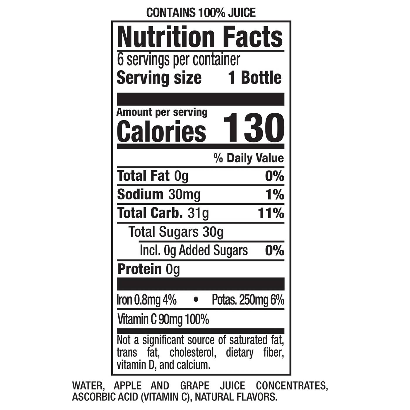 Water, Apple and Grape Juice Concentrates, Ascorbic Acid (Vitamin C), Natural Flavors.