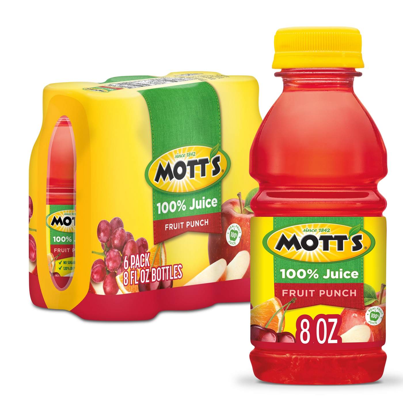 The original, delicious treat, Mott's 100% Fruit Punch Juice is the perfect snack or meal companion. It's a good source of Vitamin C and free of cholesterol. Bringing the best of the orchard to your household, Mott's helps families enjoy delicious fruit goodness every day. You won't find any artificial flavors in Mott's products, so you can feel good about making healthy choices.
