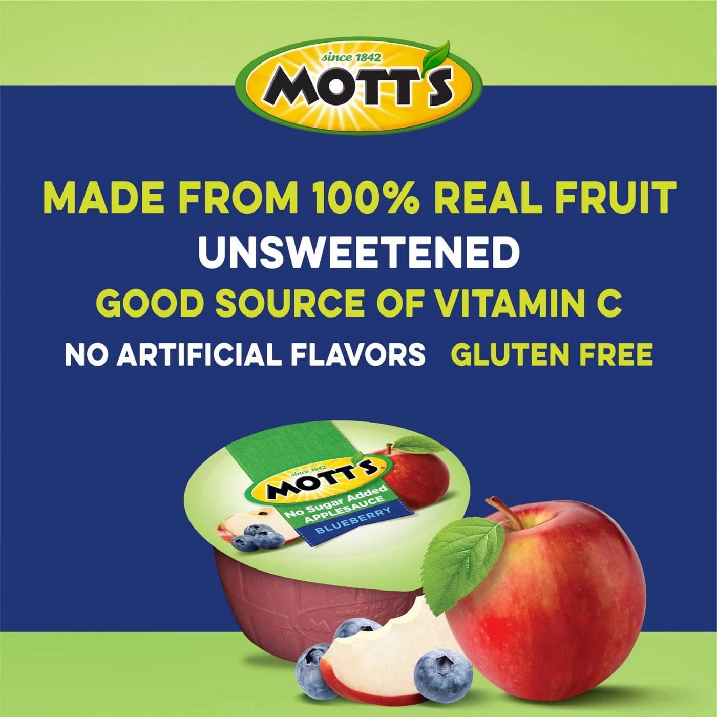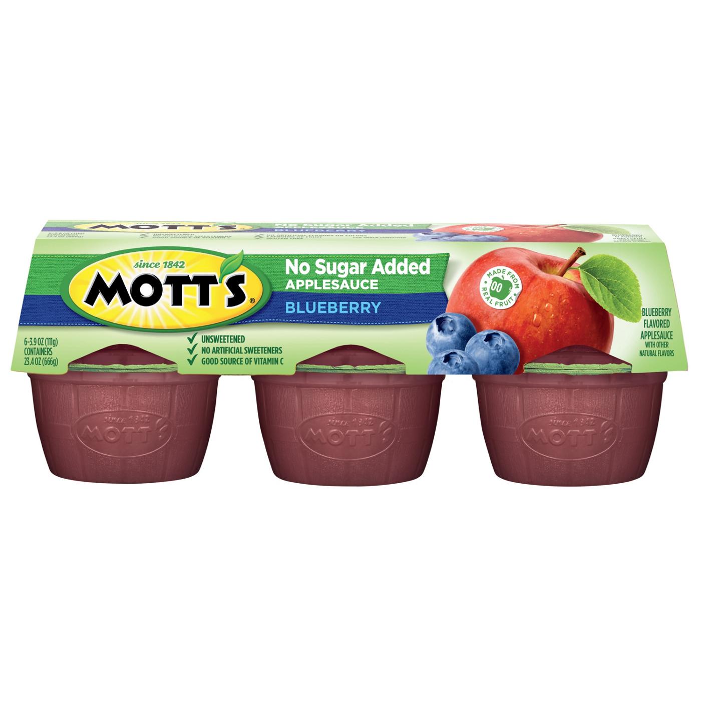 The original, delicious treat, Mott's No Sugar Added Blueberry Applesauce is the perfect snack or meal companion. It's a good source of Vitamin C and free of cholesterol. Bringing the best of the orchard to your household, Mott's helps families enjoy delicious fruit goodness every day. You won't find any artificial flavors in Mott's products, so you can feel good about making healthy choices.