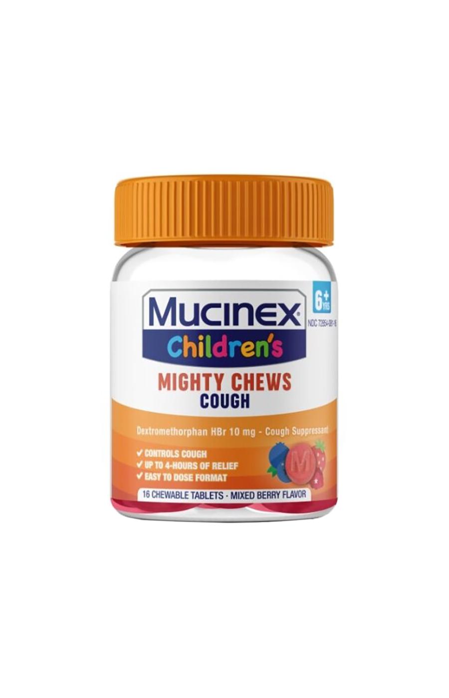 Introducing new Mucinex Children's Mighty Chews - the first and only medicated cough relief chewable tablets* made with kids in mind. These kid-friendly mixed berry flavored tablets are convenient, fuss-free, and perfect for on-the-go cough relief. Mighty Chews are easy-to-dose and easy-to-take so you can say goodbye to measuring cups and messy cough syrups. Just one dose provides up to 4 hours of cough relief.