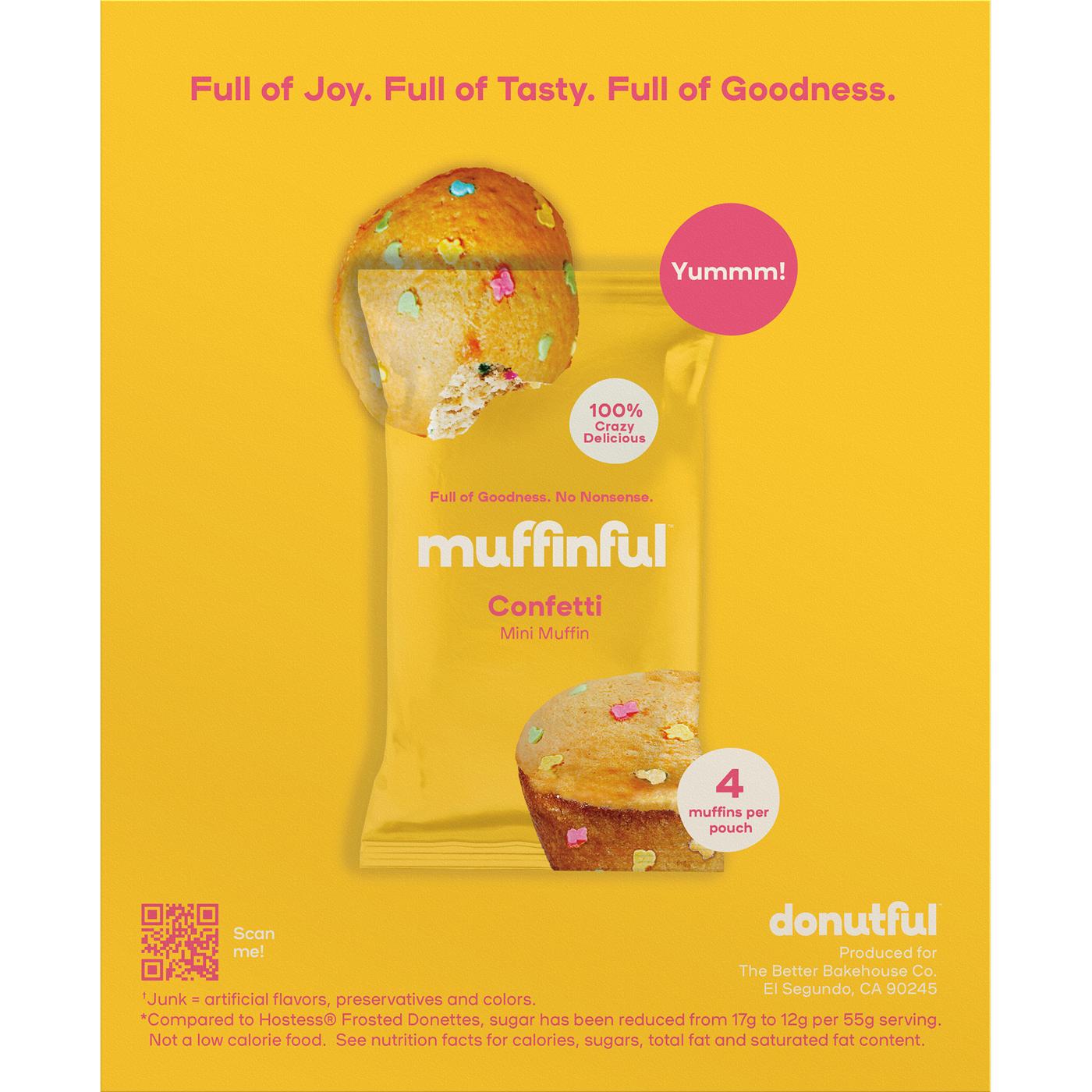 Indulge in the crazy delicious taste of Muffinful Confetti Mini Muffins. Made with simple ingredients and way less sugar, you can feel good about every bite. They're the perfect sweet breakfast or snack cakes to enjoy any time of the day. Our mini muffins are crafted with real, simple ingredients and our exclusive blend of goodness, creating a muffin that’s a work of art. We deliver 0% junk and 100% crazy delicious taste. We only use high-quality ingredients in our muffins. At Muffinful, we believe in keeping things real. That's why we don’t use any artificial sweeteners, colors or flavors in our mini muffins. We simply use less sugar and our proprietary recipe of high-quality ingredients for a perfectly sweet taste. Whether you're looking for a quick breakfast, a tasty snack, or a sweet treat, our Confetti Mini Muffins are the perfect choice. Enjoy crazy delicious muffins without the guilt with Muffinful.