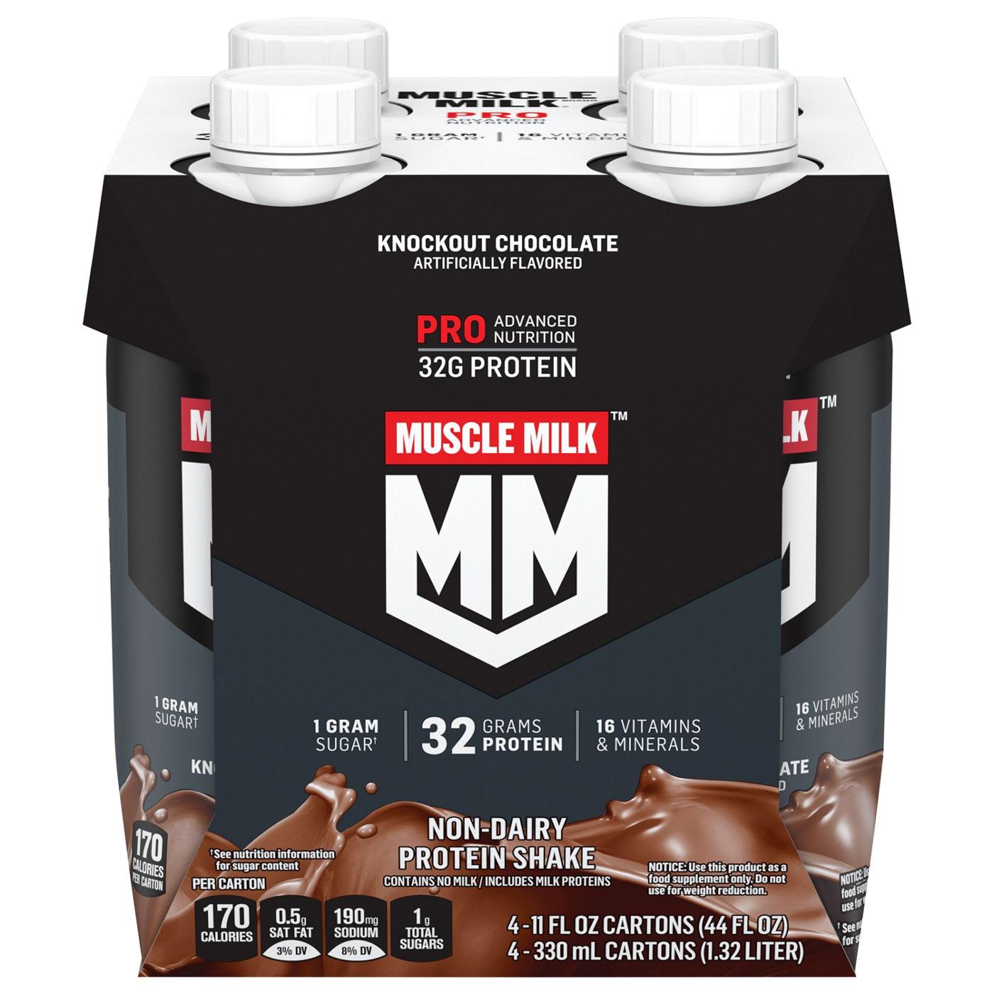 Muscle Milk 32g Protein Shakes 4 pk Bottles - Knockout Chocolate