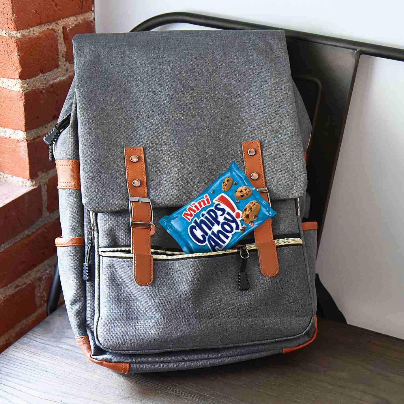 CHIPS AHOY! Mini Chocolate Chip Cookies are the CHIPS AHOY! cookies you know and love, bite-sized and baked to have the perfect amount of crunch. Make lunches at school or work more exciting by including CHIPS AHOY! mini cookies snack packs or use as party favors or take with you on the go as travel snacks. Regardless of the occasion these snack cookies make a simple treat or dessert.