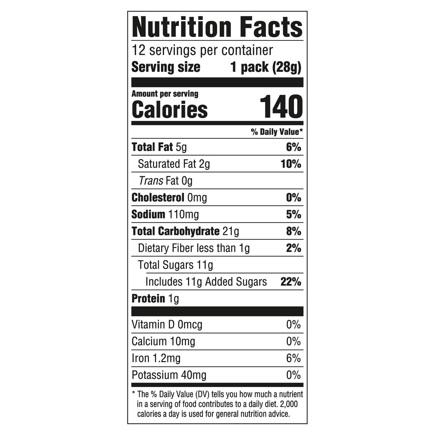 Serving Size1.00 pack- Amount Per ServingCalories130