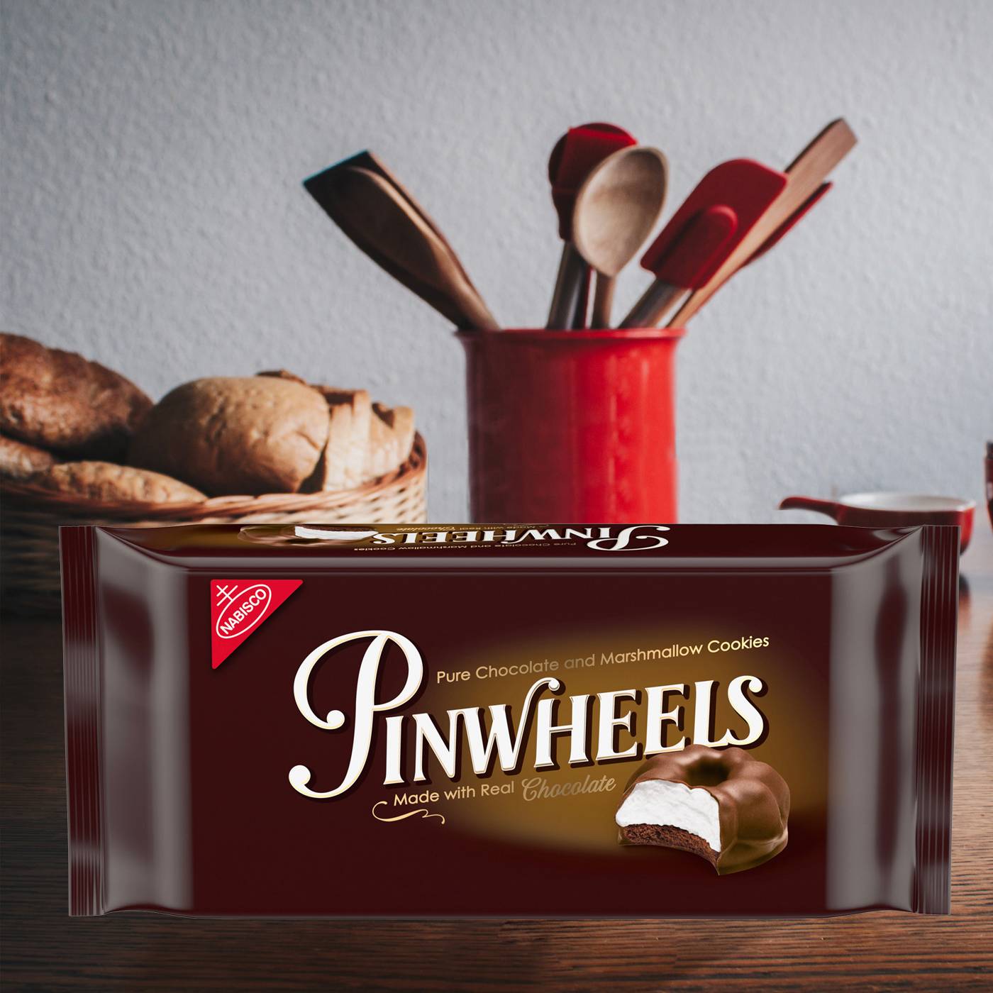 Looking for a delicious chocolate and marshmallow treat? Try Nabisco Pinwheels Pure Chocolate and Marshmallow Cookies. Pinwheels cookies feature a chocolate wafer topped with marshmallow and covered in chocolate to make a perfect sweet treat. Enjoy these chocolate marshmallow cookies on their own or serve these sweet snacks with coffee or tea at your next gathering or holiday party. Each pack is sealed for freshness.