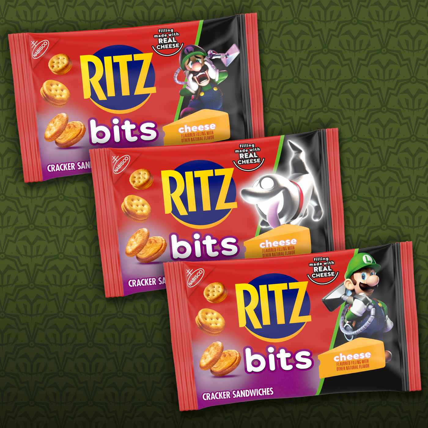 RITZ Bits Cheese Sandwich Crackers are bite-size snacks that layer a mouthwatering cheese spread between two tiny RITZ Bits snack crackers. These cracker sandwiches are made with real cheese and contain no high fructose corn syrup. Toss these cheese crackers in your travel bag or lunchbox for a special treat. Each package contains 12 perfectly portable 1 ounce snack packs.