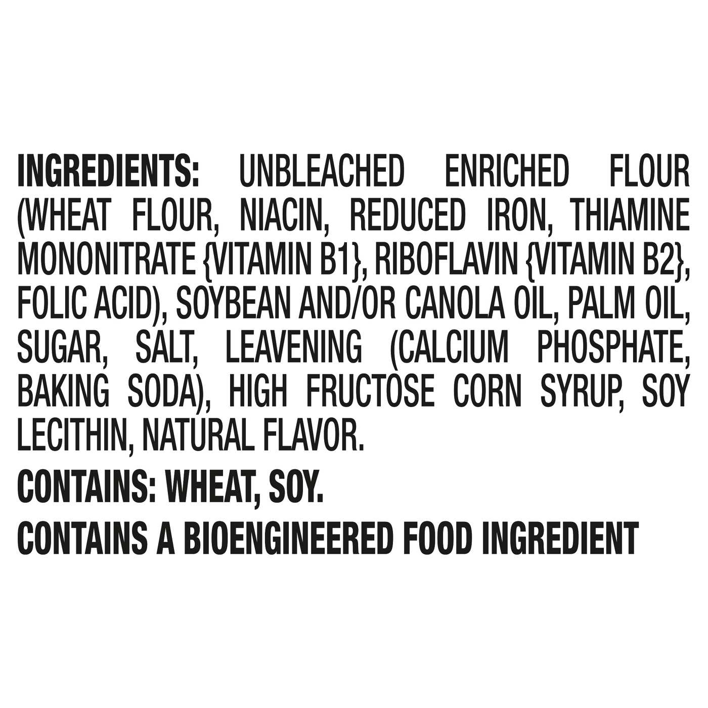 Unbleached Enriched Flour (Wheat Flour, Niacin, Reduced Iron, Thiamine Mononitrate [Vitamin B1], Riboflavin [Vitamin B2], Folic Acid), Soybean And/Or Canola Oil, Palm Oil, Sugar, Salt, Leavening (Calcium Phosphate, Baking Soda), High Fructose Corn Syrup, Soy Lecithin, Natural Flavor.Contains: Wheat, Soy.Allergens and safety warnings