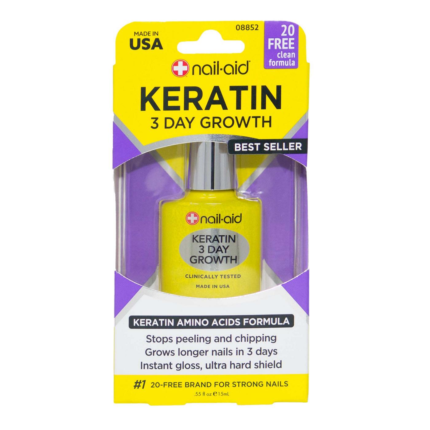 Nail Aid Keratin 3 Day Growth is a nail treatment designed to support accelerated nail growth. The keratin-infused formula helps to fortify nails, making them more resilient against breakage and splitting. This treatment is formulated to help you achieve longer, stronger nails in a short time.• Keratin-infused formula promotes nail strength and resilience• Supports faster nail growth for visibly longer nails• Helps fortify nails to resist splitting and breaking• Designed to improve the overall condition of weak nails