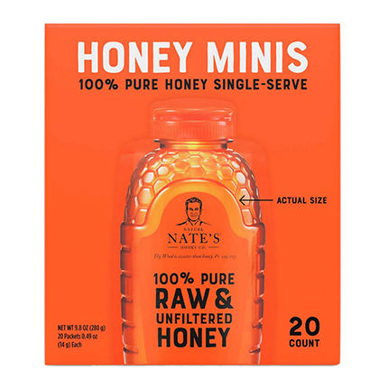 Nate's Honey single serve minis are a convenient way to enjoy their best-tasting, highest-quality honey anywhere you go. Whether you add some to your morning cup of joe or tea, give a few to your friends, or use some for a natural workout boost, they're all 100% pure, raw and unfiltered honey. Drizzle them, spread them, share them!