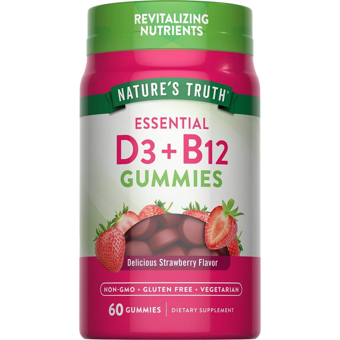 Nature's Truth Vitamins Revitalizing Nutrients D3 + B12 Strawberry Gummies