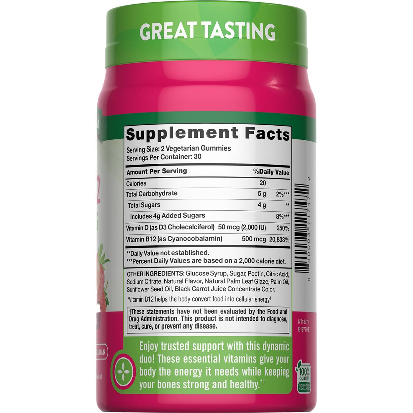 Nature's Truth D3 + B12 Gummies - Strawberry Flavor