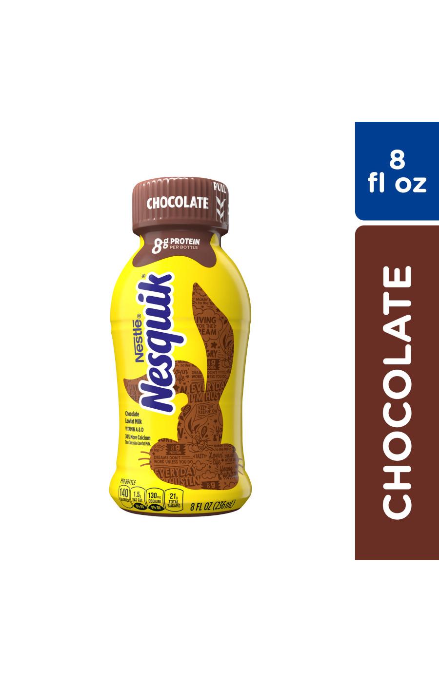 • This Nesquik chocolate milk offers 30% more calcium than regular chocolate lowfat milk