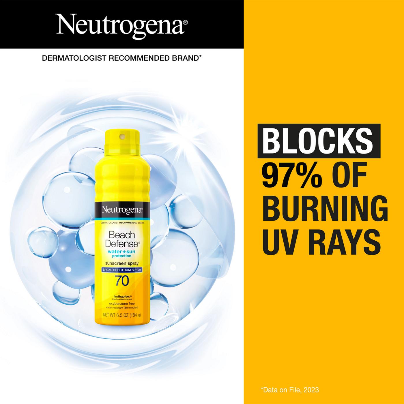 Get ready for a day in the sun with Neutrogena Beach Defense Spray Sunscreen. This family-friendly sunscreen provides broad-spectrum SPF 70 protection in a convenient spray format. Its oil-free and water-resistant formula is an ideal choice for outdoor activities.• Provides broad-spectrum SPF 70 protection• Oil-free and water-resistant formula• Suitable for the whole family (unisex)• Easy-to-apply spray for outdoor convenience