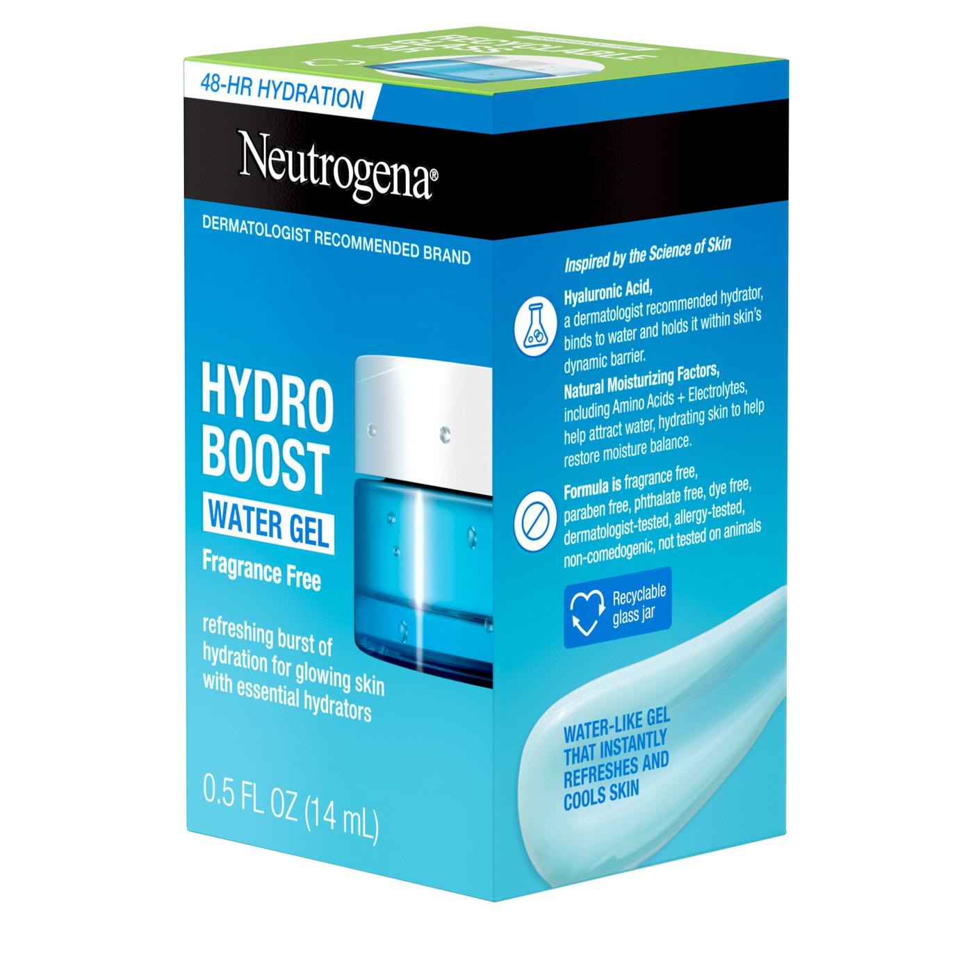 Experience intense hydration with Neutrogena's Hydro Boost Water Gel. The refreshing, oil-free gel formula contains hyaluronic acid, a powerful hydrator that leaves skin feeling smooth and supple. It absorbs quickly like a gel but has the long-lasting moisturizing power of a cream.• Lightweight water-gel texture absorbs quickly without a greasy feel• Oil-free and non-comedogenic formula is suitable for most skin types• Hypoallergenic and cruelty-free formulation• Free of parabens, phthalates, and sulfates
