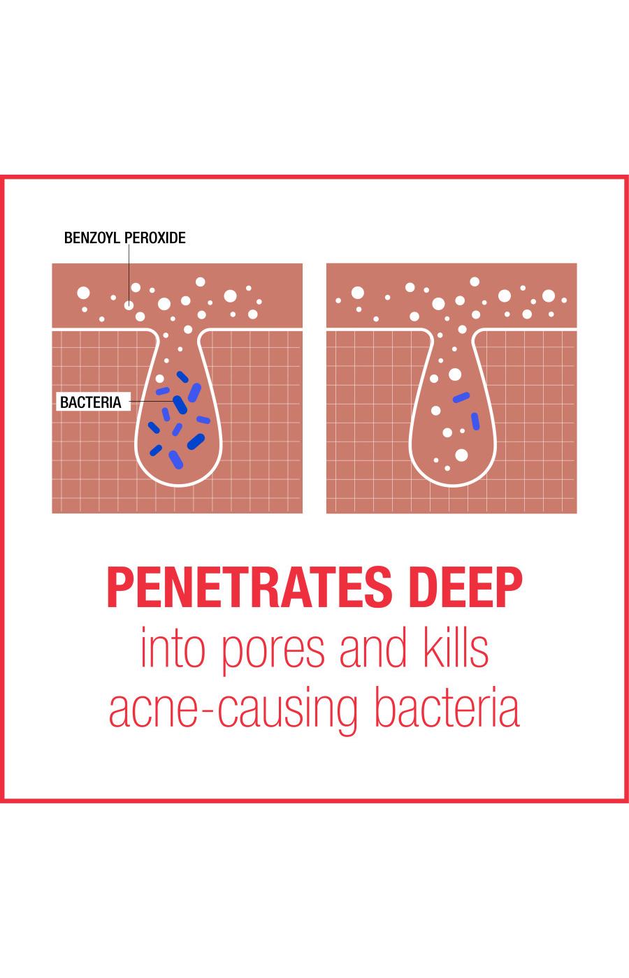 For external use only. When using this product Skin irritation and dryness is more likely to occur if you use another topical acne medication at the same time. If irritation occurs, only use one topical acne medication at a time. Avoid unnecessary sun exposure and use sunscreen Avoid contact with the eyes, lips, and mouth. If contact occurs, flush thoroughly with water. Avoid contact with hair and dyed products, which may be bleached by this product Skin irritation may occur, characterized by redness, burning, itching, peeling, or possibly swelling. Irritation may be reduced by using the product less frequently or in a lower concentration. Do not use if you Have very sensitive skin Are sensitive to benzoyl peroxide. Stop use and ask a doctor if Irritation becomes severe. Keep out of reach of children. If swallowed, get medical help or contact a Poison Control Center right away.,