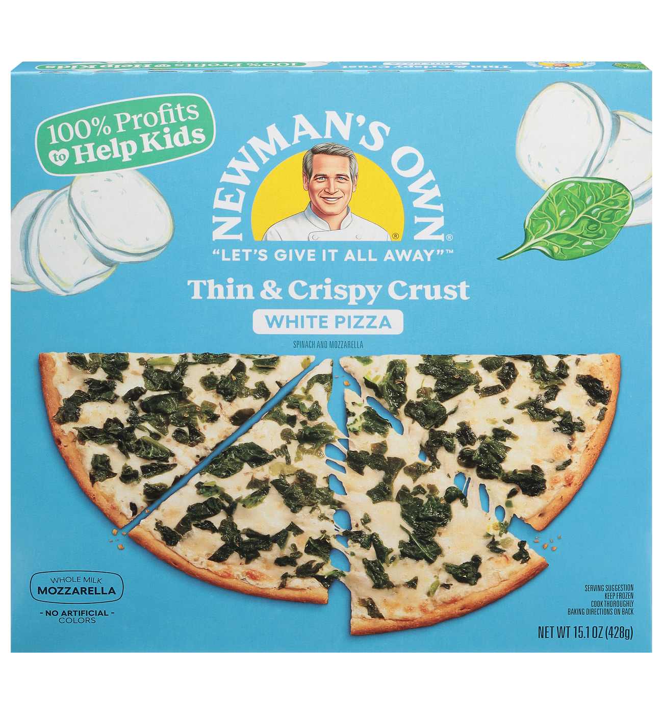 What's white, white and green all over? Newman's Own Thin & Crispy White pizza of course! Your taste buds will never truly understand the full world of pizza goodness until they experience this— a yummy mix of ricotta, mozzarella and spinach atop a perfectly-baked thin and crispy crust with no artificial preservatives, flavors, or colors.
