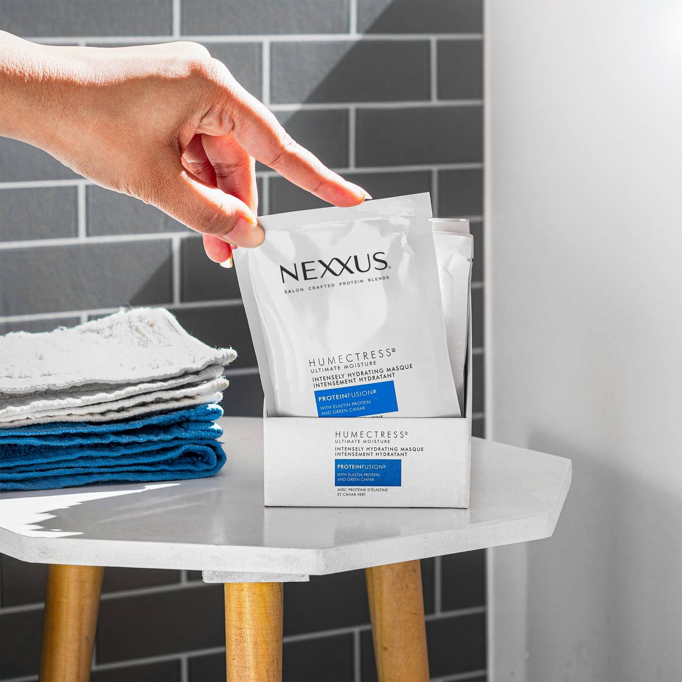 At Nexxus, we believe style is about looking understated yet covetable. It's having hair with natural movement that withstands an on-the-go lifestyle. Born in salons and perfected by science, each Nexxus product is infused with high performing technologies and precious ingredients. Dry hair remedies dragging you down? Rebalance with Nexxus Humectress Hair Masque for dry hair. Rich in glycerine, this moisturizing hair mask deeply rehydrates by binding moisture within your hair. The intense hydration of this conditioning hair mask rescues heat- and chemically-damaged hair strands using advanced conditioning technology. This is deposited in the weakest places on the hair fiber, strengthening and improving natural hair movement. Hair is left healthy and weightless inside and out. Nexxus recommends: Dry hair will respond to the intensive moisture of this Nexxus Humectress deep conditioning hair treatment. To achieve natural movement and brilliant shine, use this hair mask as part of your regular hair cleansing routine with other products from the Ultimate Moisture Collection. Step 1: Wash your hair with Nexxus Therappe Shampoo. Step 2: Smooth Nexxus Humectress Hair Masque into wet hair from mid-lengths to the ends, comb through, and leave for 3-5 minutes before rinsing thoroughly. For a less intense treatment, you can use Nexxus Humectress Conditioner instead of the Masque. Step 3: Finish with Nexxus Humectress Luxe Lightweight Conditioning Mist to lock in moisture.
