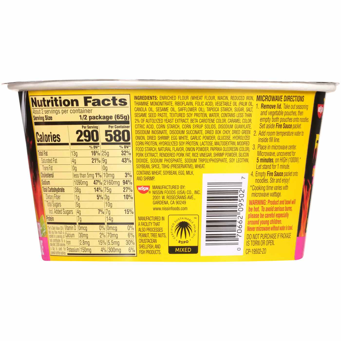 Contains: wheat, soybean, egg, milk and shrimp. Manufactured in a facility that also processes peanut, tree nuts, crustacean, shellfish, and fish products.,Warning: Product and bowl will be hot. To avoid serious burns, please be careful especially around young children. Never microwave without water in bowl. Do not purchase if package is torn or open.