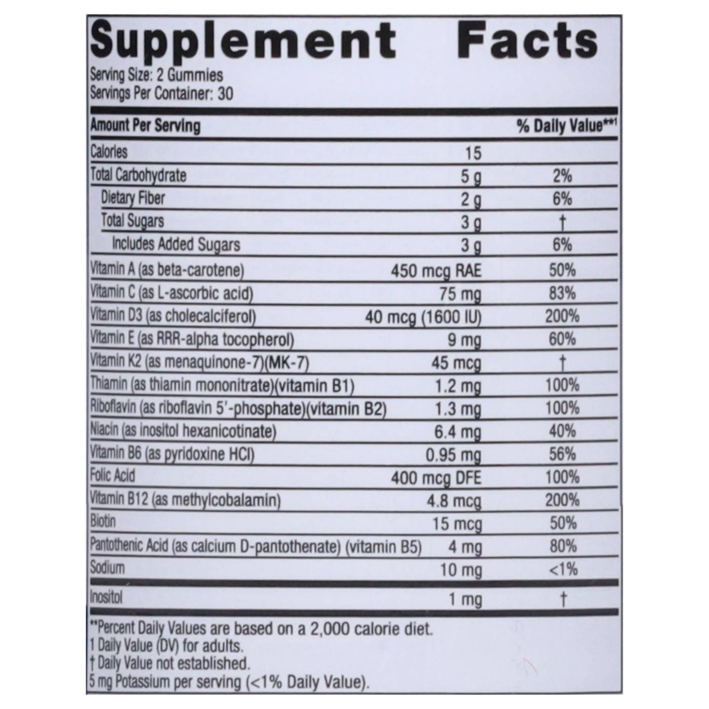 Serving Size2.00 gummies- Amount Per ServingCalories15