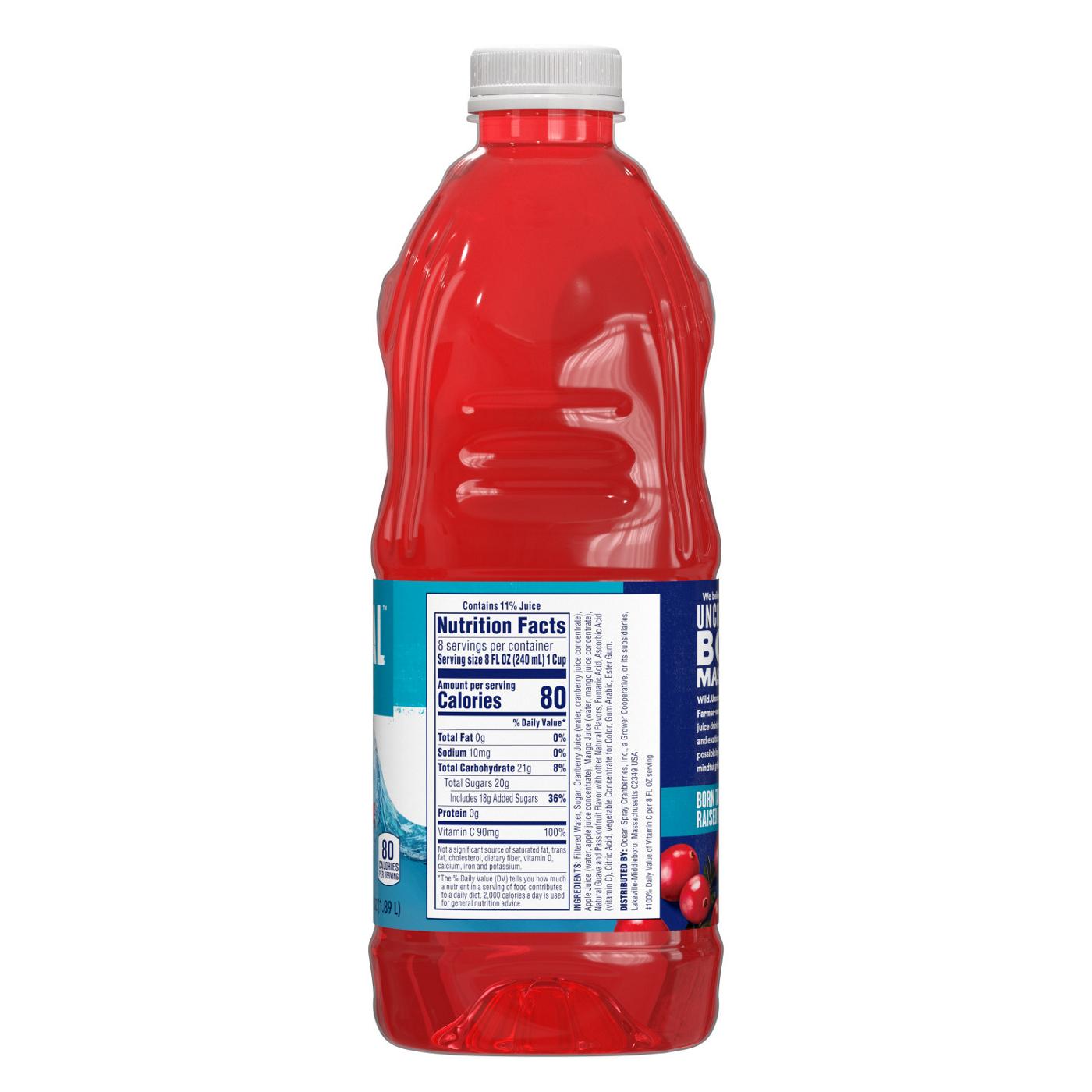 Filtered Water, Sugar, Cranberry Juice (water, cranberry juice concentrate), Apple Juice (water, apple juice concentrate), Mango Juice (water, mango juice concentrate), Natural Guava and Passionfruit Flavor with other Natural Flavors, Fumaric Acid, Ascorbic Acid (Vitamin C), Citrtic Acid, Vegetable Concentrate for Color, Gum Arabic, Ester Gum.
