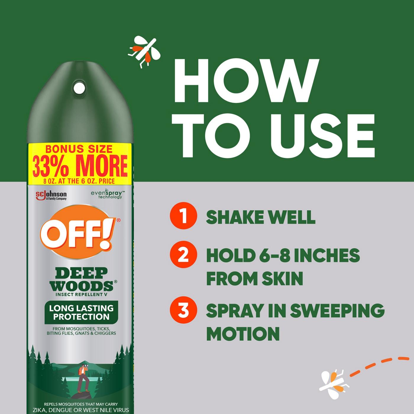 OFF! Deep Woods Insect Repellent V provides long-lasting mosquito protection against biting insects so you can enjoy the outdoors uninterrupted and keep living life your way.