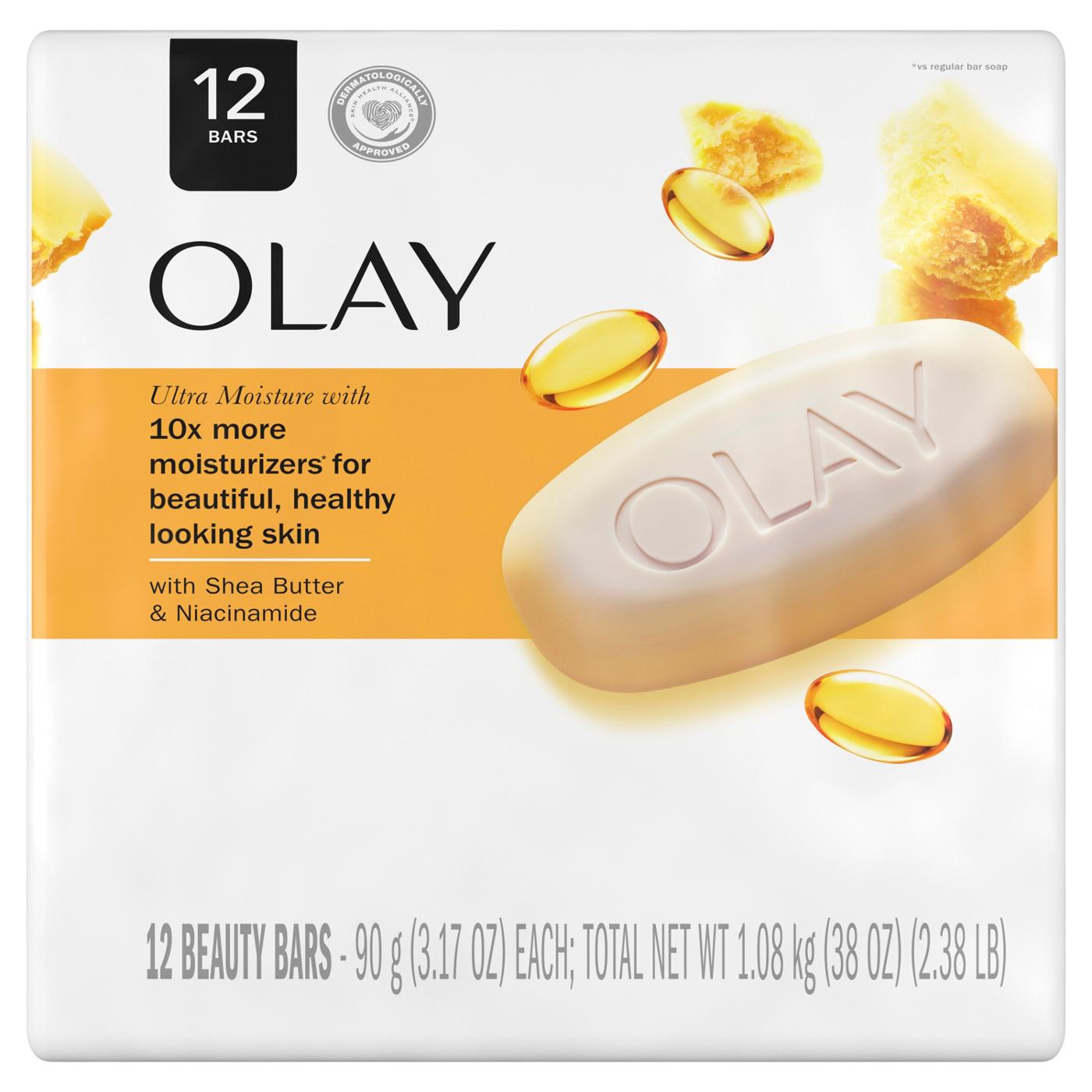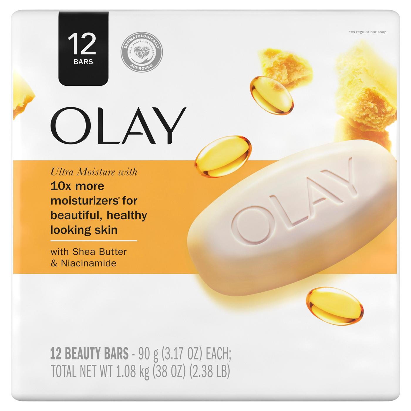 6+6= 12 bars. Buy 2 & save (vs. 6-bar personal size). Regular soap can leave your skin dry. The Olay Ultra Moisture bar is specially formulated with creamy Olay lather and shea butter. Olay Ultra Moisture bar goes beyond cleansing, delivering Olay deep moisturizers to the skin while helping to wash away dry surface skin. So after you dry off, all that's left is skin that feels clean and wonderfully smooth all over. It's even gentle enough to use on your face.