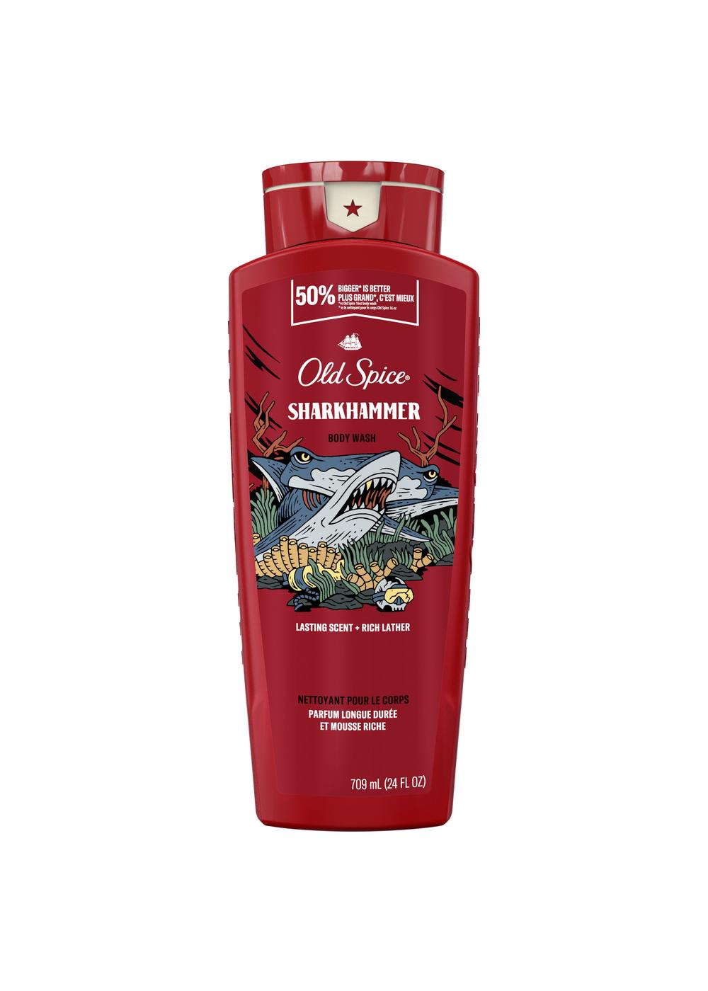 Old Spice Sharkhammer Body Wash for men washes away dirt and odor with ease-unleashing a clean feeling with a ridiculously long-lasting scent. This powerful bodywash has rich lather and lasting scent, so you can get thoroughly clean and know it. The scent features the fresh sent of water and woods. Dare we say, this is one sniffworthy scent. Next time you hear a knock ont he side of your boat, answer. It's a SharkHammer with a smello-gram. Check out the entire Old Spice Wild Collection and smell sniffworthy