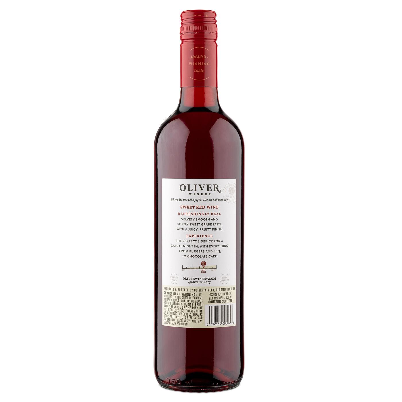 Classic Concord grape aroma, deliciously smooth, fruity taste, and ruby-red color. Our commitment to sourcing the best fruit has made Oliver Winery’s Sweet Red an Indiana and Midwest favorite. A refreshingly real wine. No flavorings or colorings, no high fructose corn syrup. Oliver Sweet Red tastes better because it’s crafted with intention and only the very best fruit. This soft red wine is fresh, crisp, and just sweet enough. It’s also a consumer-rated best buy!The original anytime wine.• ABV: 11%• Food Pairings: Pepperoni pizza, burger, BBQ, chocolate