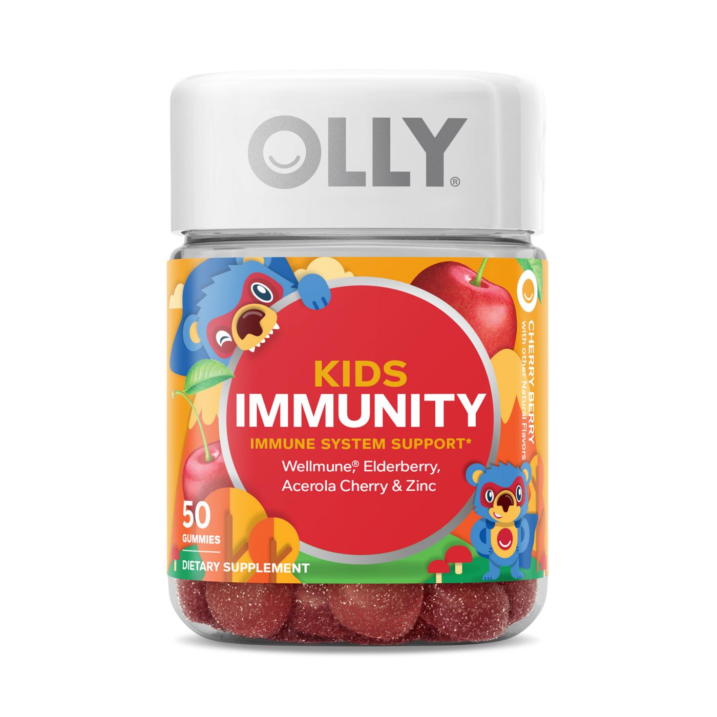 OLLY Kids Immunity gummies are packed with the good stuff kiddos need to keep up a strong immune system, rain or shine.*OLLY Kids Immunity packs a powerful blend with Wellmune® Beta Glucans, a scientifically backed ingredient for keeping little bodies immune defending cells in tip-top shape. Acerola Cherry is one of nature's richest sources of Vitamin C. Elderberry is a super food has been used for centuries and Zinc is an essential mineral for immune support.*Good health is at the center of everything we do. That's why we’ve made it our mission to make nutrition easy to understand. We do it by crafting products that are as effective as they are delicious—because we know when something feels good, you’re more likely to do it.**These statements have not been evaluated by the Food and Drug Administration. This product is not intended to diagnose, treat, cure or prevent any disease.Wellmune® is a registered trademark of the Kerry Group.•OLLY KIDS IMMUNITY: These powerful little OLLY immunity gummies are packed with the good stuff kiddos need to keep up a strong immune system rain or shine*• THE GOODS INSIDE: A powerful blend with Wellmune Beta Glucans, a scientifically backed ingredient for keeping immune defending cells in tip-top shape. Acerola Cherry a rich natural source of Vitamin C. Plus Elderberry and Zinc for immune support*• HOW TO TAKE: Ages 2-4, take 1 gummy daily. Ages 5 and up, take 2 gummies daily. Chew thoroughly before swallowing• NATURALLY DELICIOUS: Naturally flavored Cherry Berry with no artificial colors or flavors and gluten-free. 50 gummies per bottle• MORE OLLY GOODNESS: We create products that are just as effective as they are delicious—gummies, multivitamins, premium softgels and more ways to feel happy inside out• 50 gummies per bottle (25 day supply)• Naturally flavored Cherry Berry