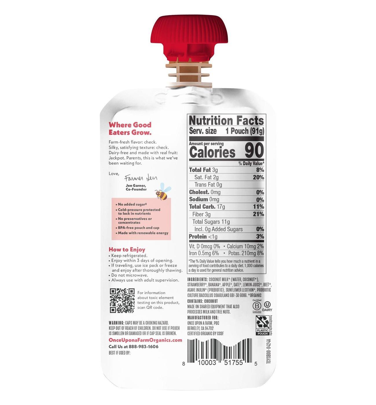 Once Upon a Farm Organic Dairy Free Coconut Milk Yogurt Alternative Pouch - Strawberry Banana