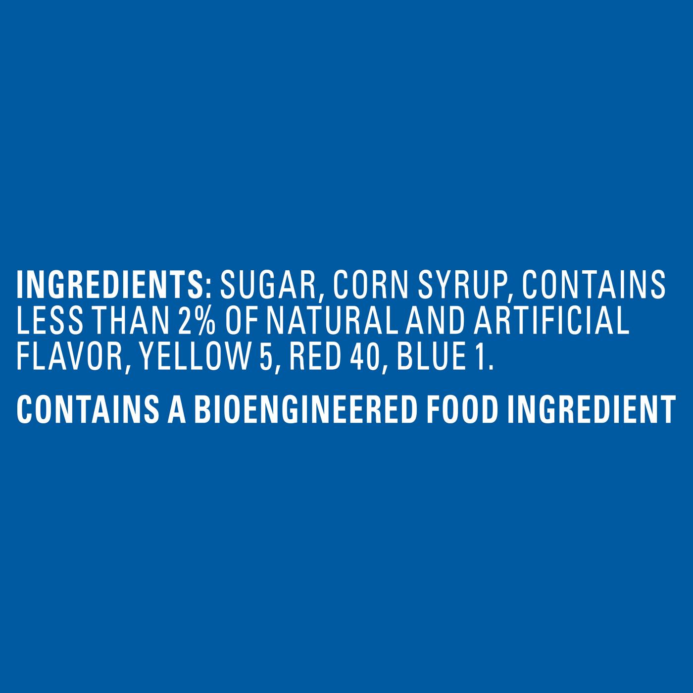 Sugar, Corn Syrup, Contains Less Than 2% Of Natural And Artificial Flavor, Yellow 5, Red 40, Blue 1.